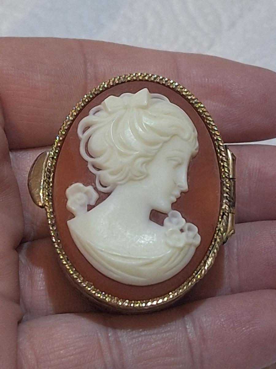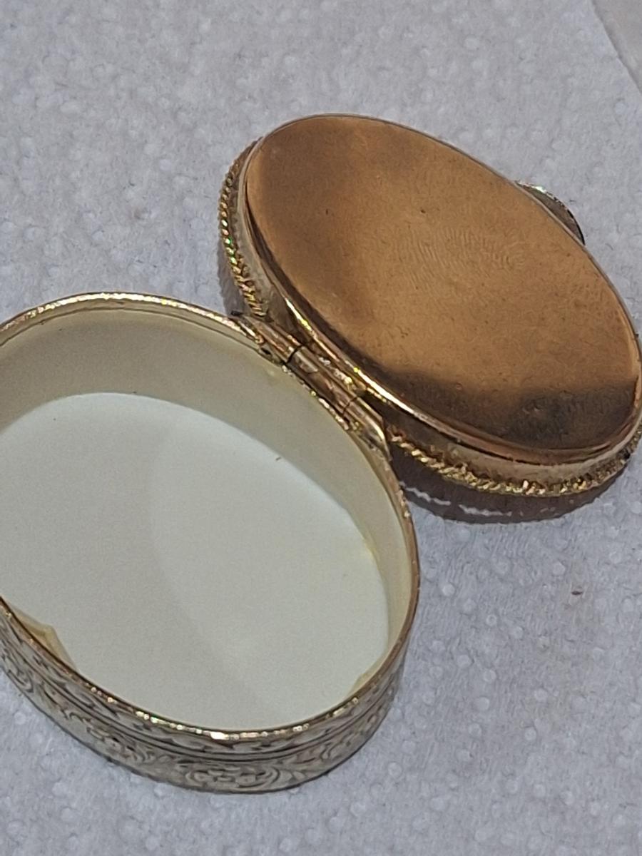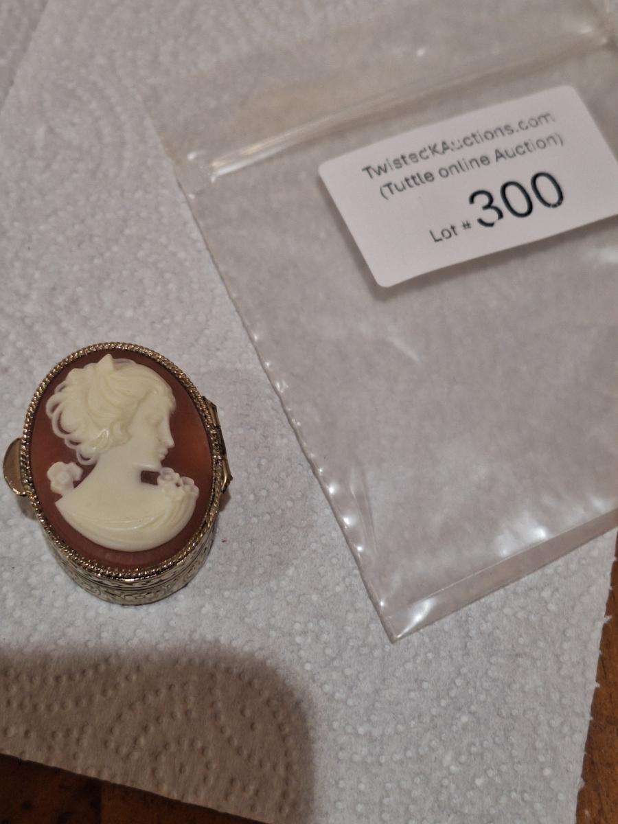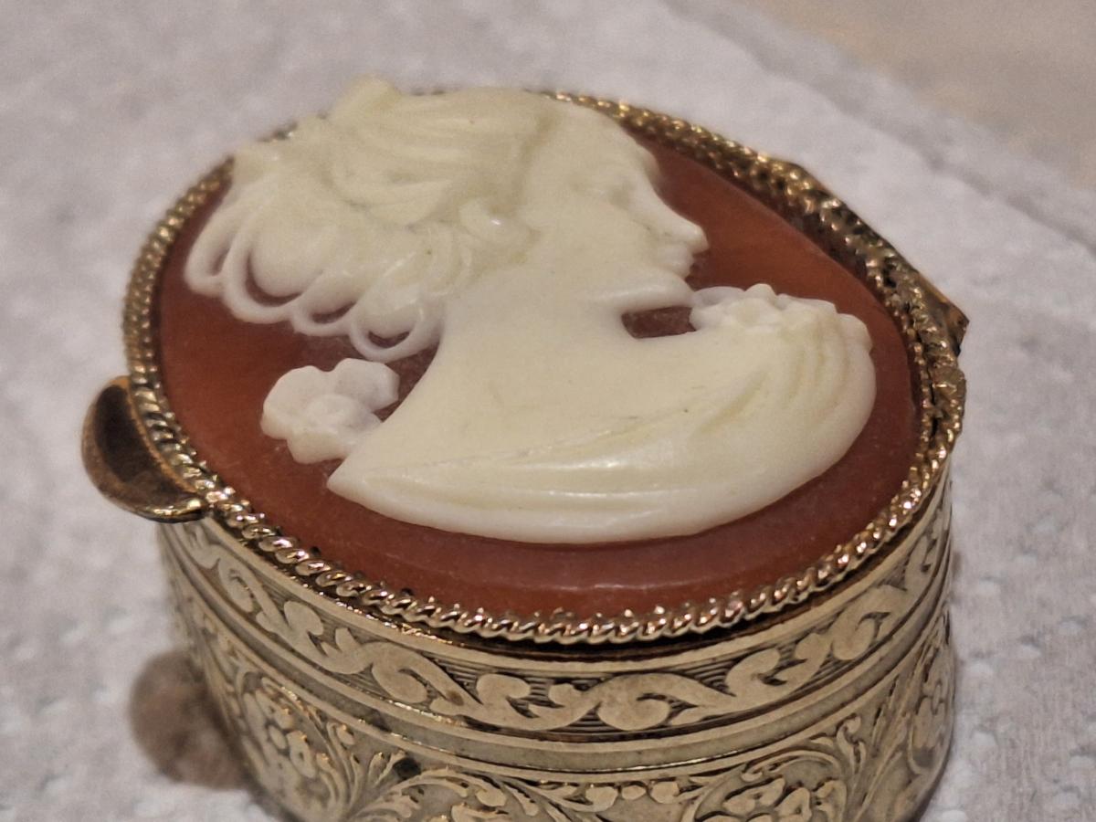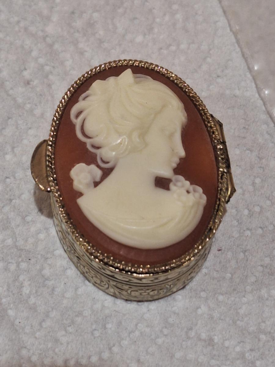 Vintage Cameo trinket or pill box gold tone