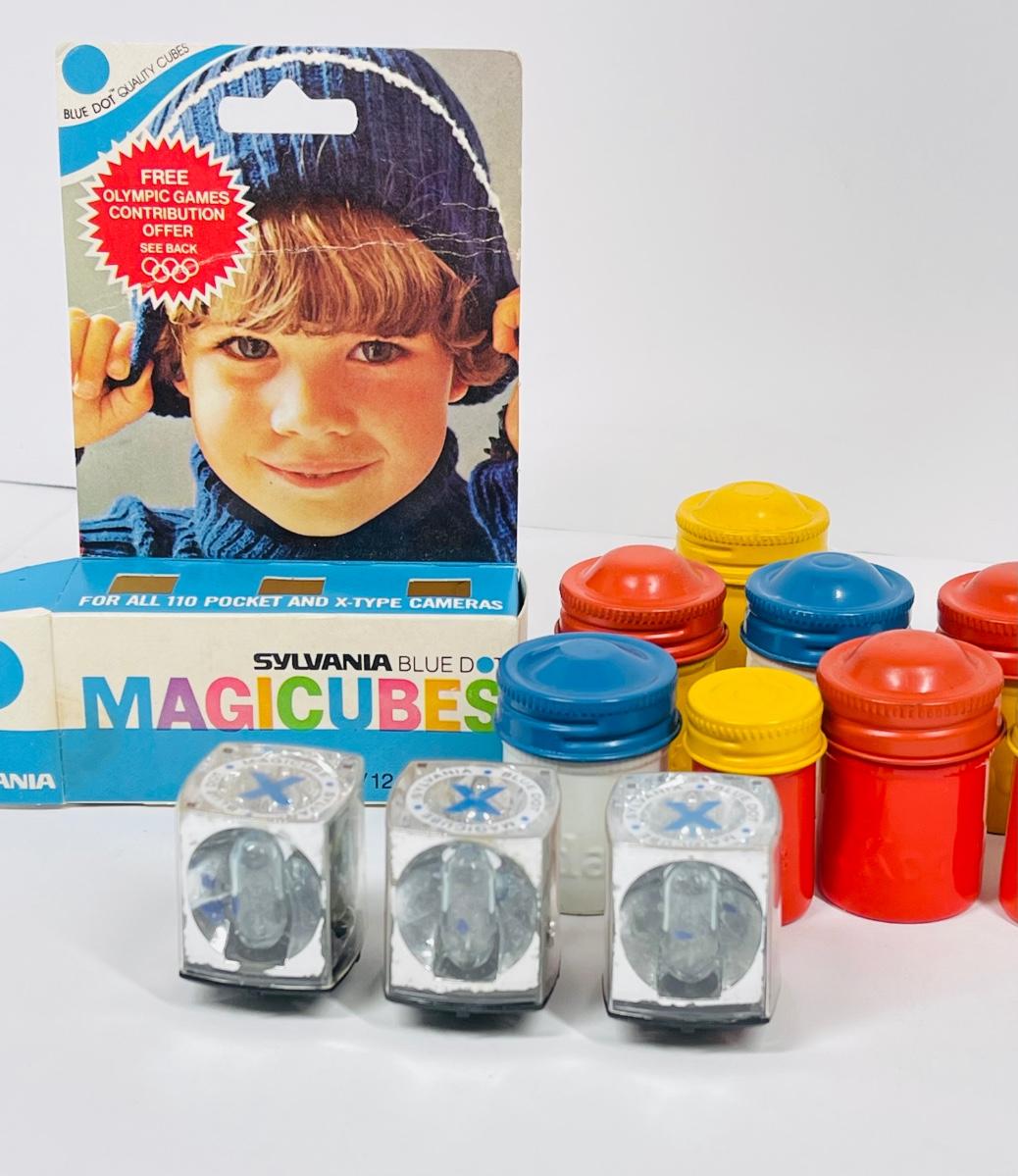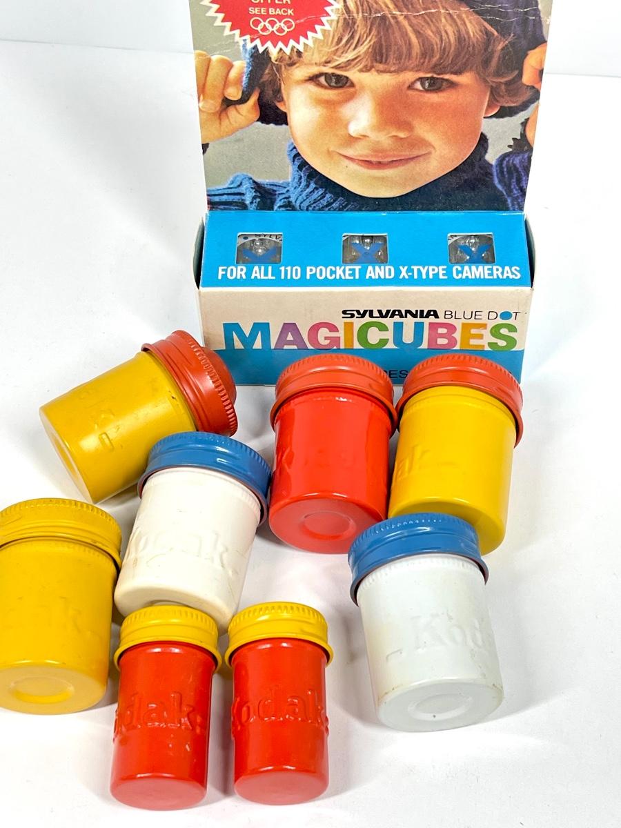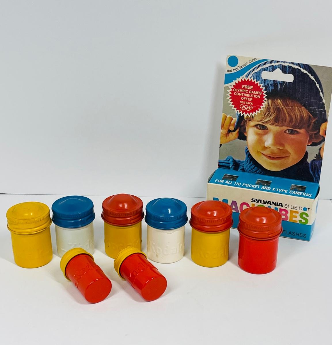 Say CHEESE!! love these Kodak film canisters!! And who remembers these flash cubes! I sure do!! They were blinding! What fun! Tell your camera collecting friend about these!! What a fun display these would make with your phot albums!