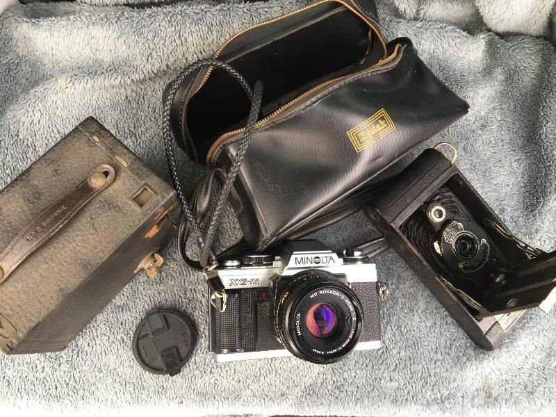 Vintage Camera Collection of 3 with Minolta XG-M and Kodak HawkEye