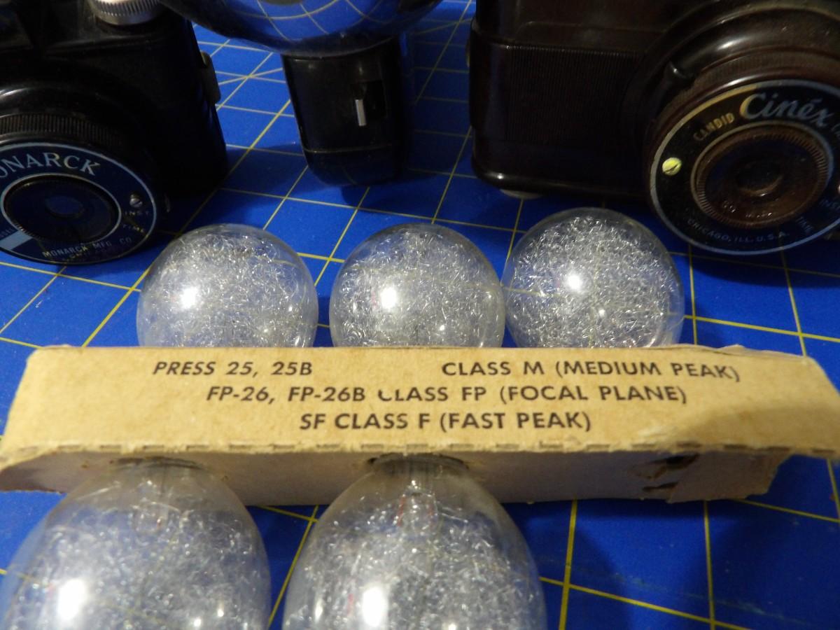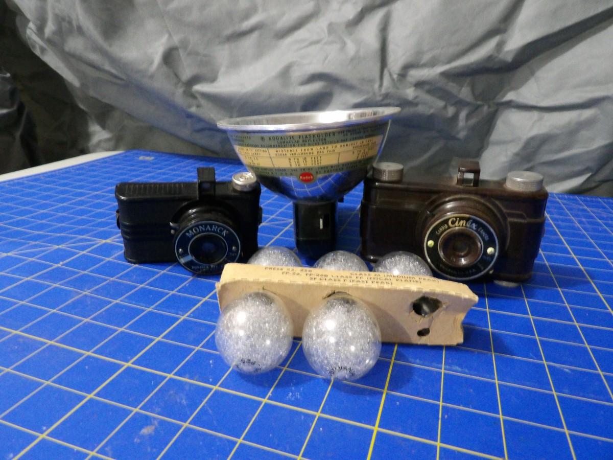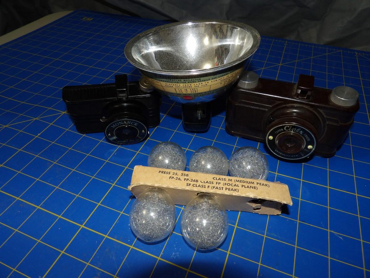 Monarck camera, Cinex camera, Kodak Flash holder and Flash bulbs