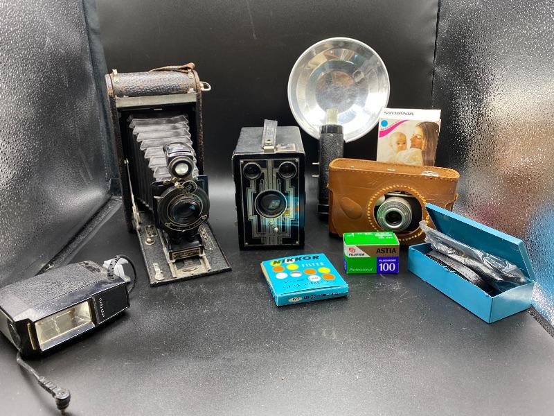 Vintage Kodak and Argus camera lot. Untested. Great for decor or props.