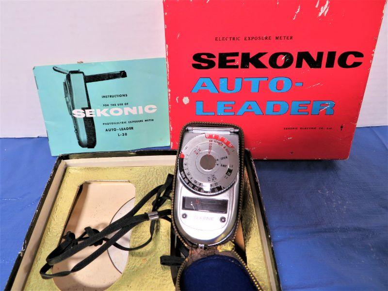 Vintage Made in Tokyo Japan Sekonic Photoelectric Exposure Meter L-38 Auto-Leader with Original Box & Case with Instructions.