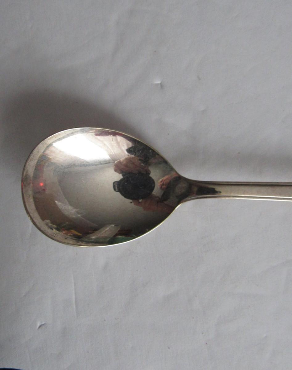 Vintage Campbell's Soup promotional advertising silver plate soup spoon. The handle features the Campbell's boy in full body. It is just marked IS and no other info. It is 6" tall and is in very good shape with very little use wear. Shipping is available at actual shipping cost plus $5.00 handling fee per box for supplies/labor. See our terms for details. All sales are final. Condition notes may not be all inclusive, we may miss some issues as most vintage items are not in mint condition and have some degree of wear, paint loss, etc, but we always try to note obvious damage.