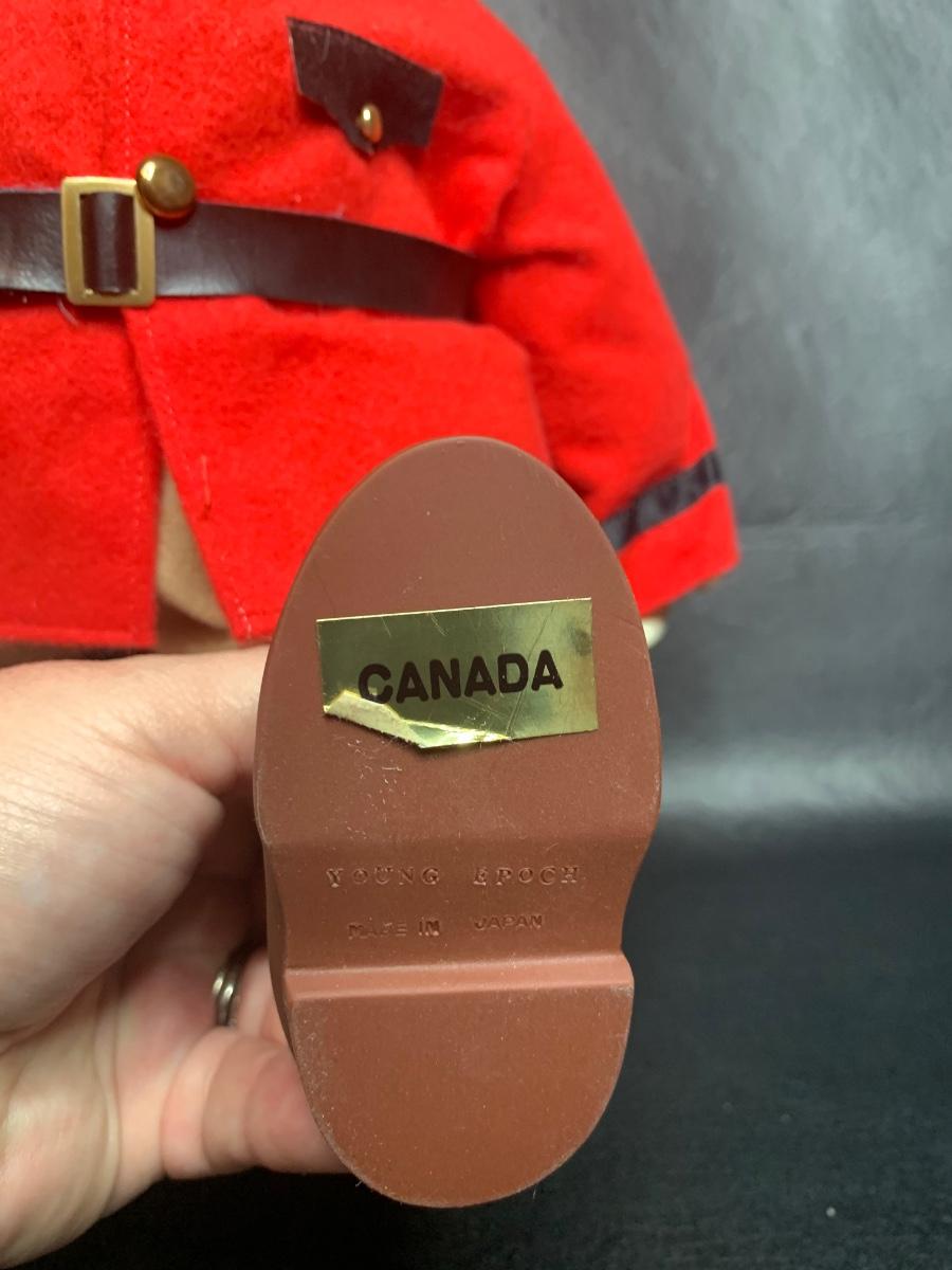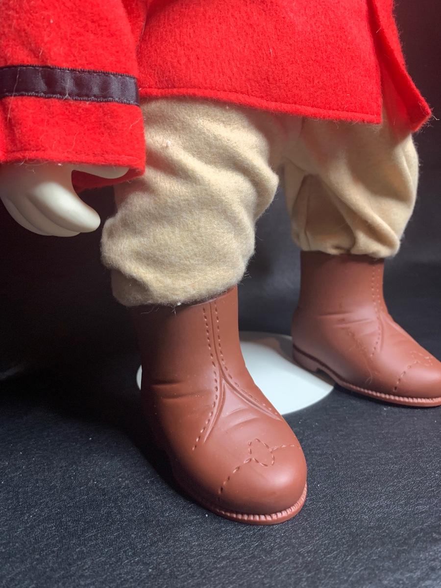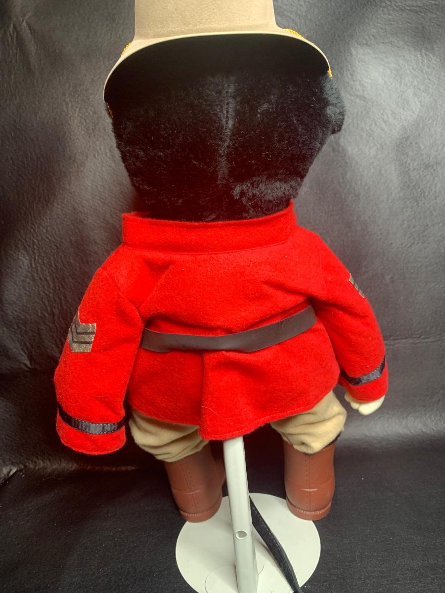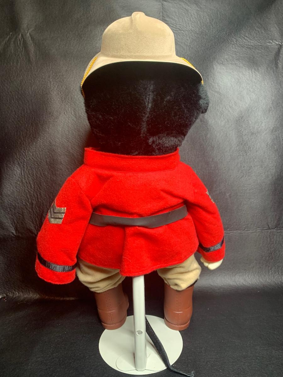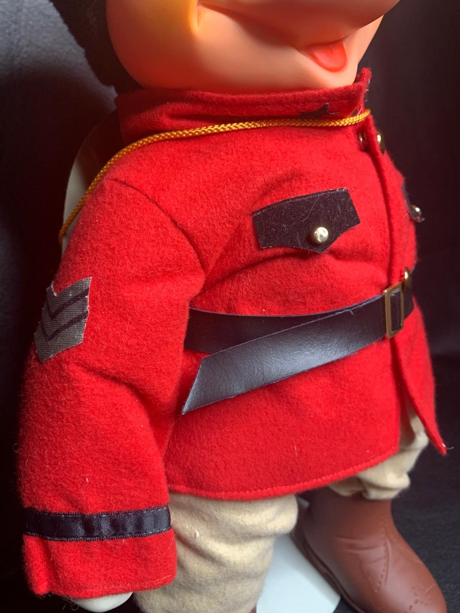 This is Disneyland Walt Disney World Mickey Mouse Plush Doll, early 1980’s Royal Canadian Mountie. Adorable Mickey Mouse Plush with vinyl Hard Face, Hands and boots. The cutie is wearing a Royal Canadian Mountie outfit. Dressed in a red uniform with black belt and pockets. He has some sort of rank on his arms. His hat is plastic with some sort of felt on the top. He will also come with the stand. And to finish he has cute little brown boots.