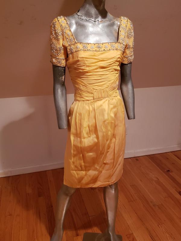Truly beautiful with glass and pearl embellished beads at top bodice and sleeves. sash waist all lined