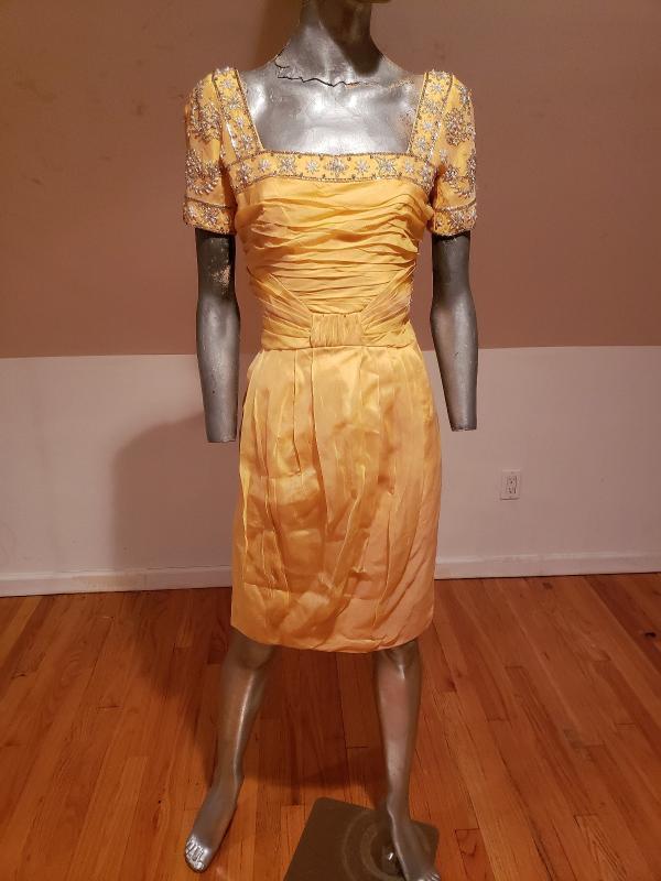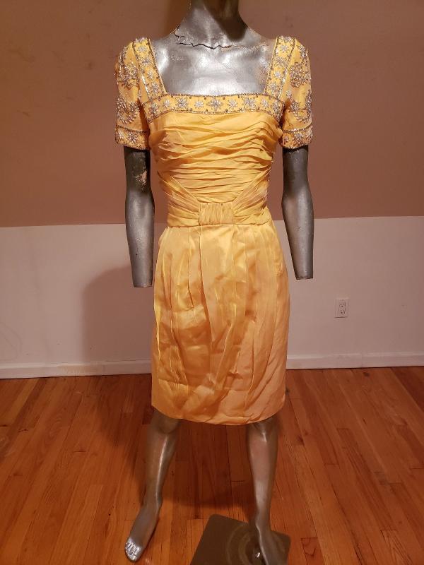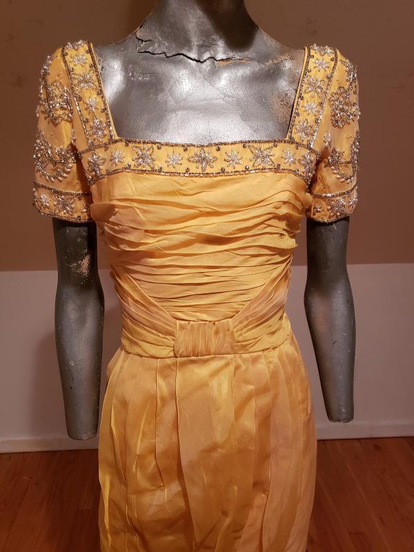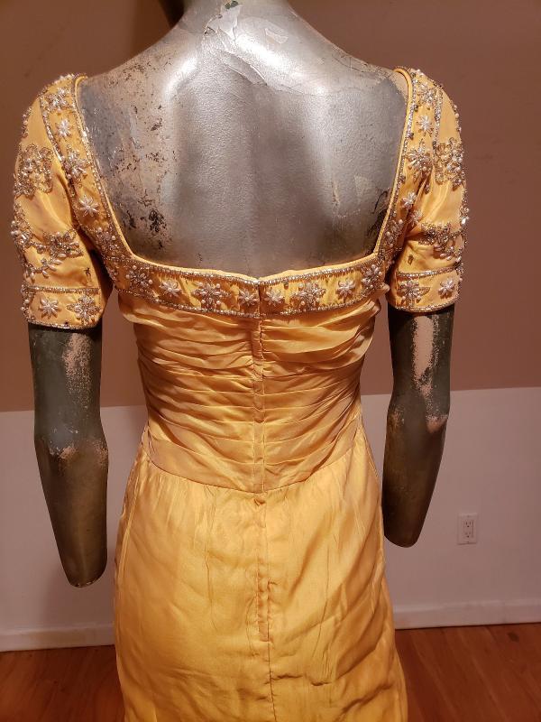 Truly beautiful with glass and pearl embellished beads at top bodice and sleeves. sash waist all lined