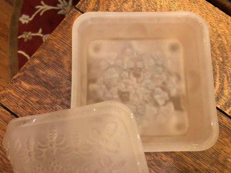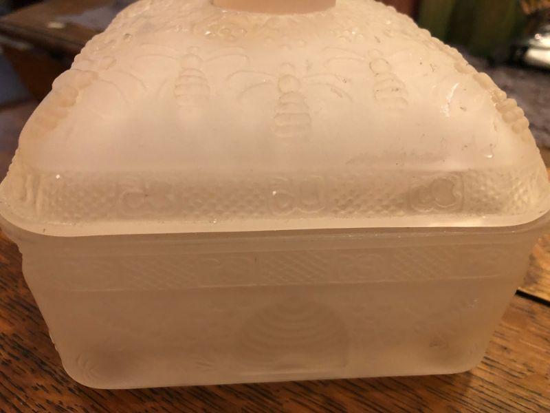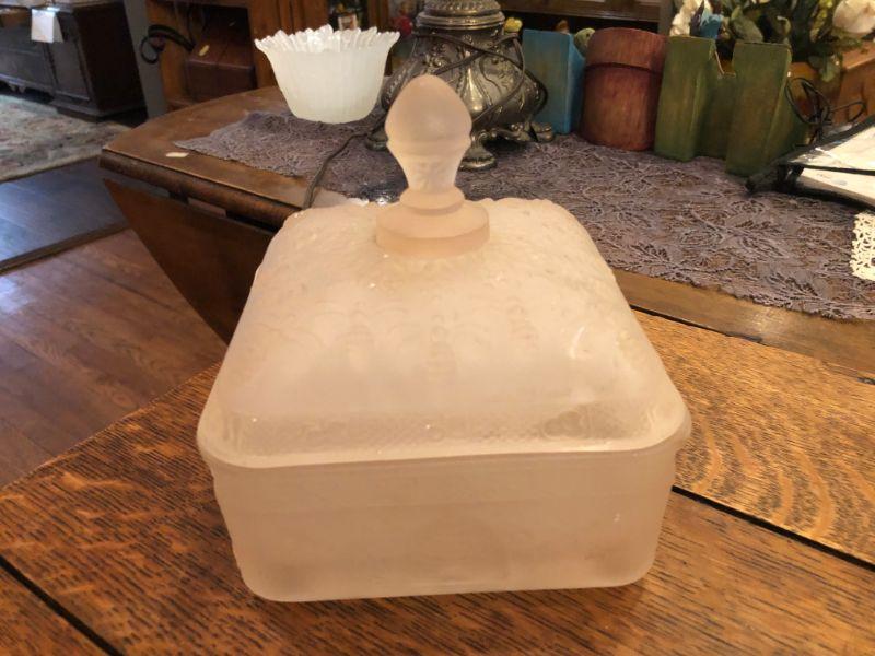 PINK FROSTED GLASS CANDY DISH WITH LID