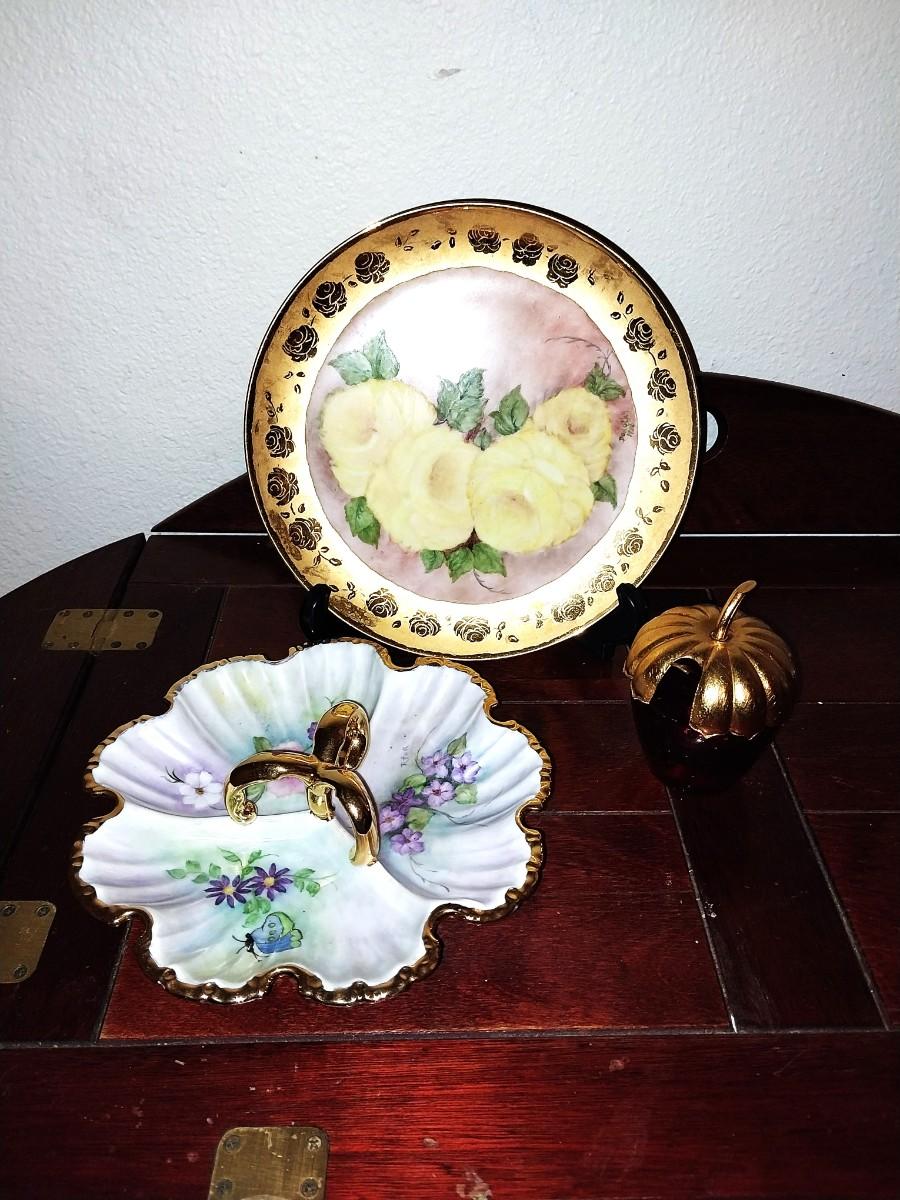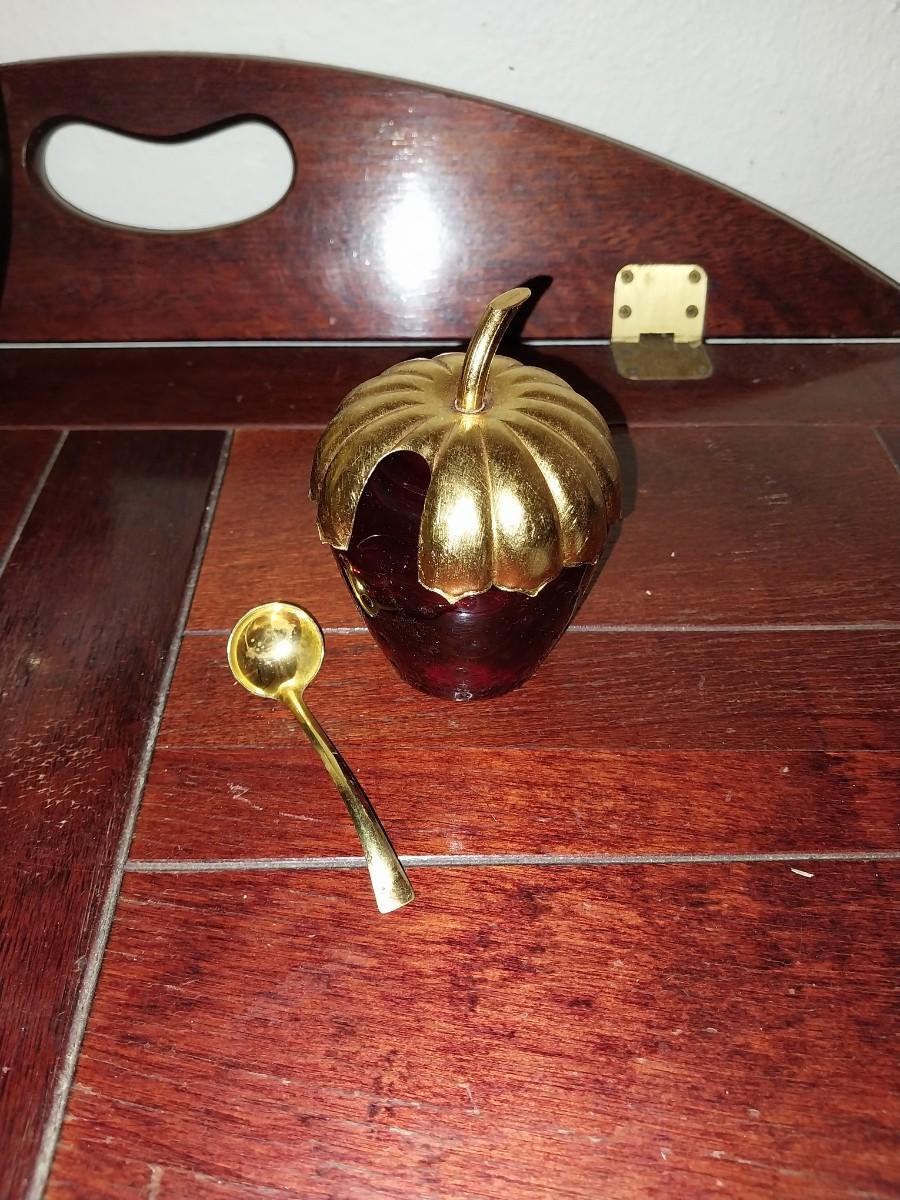 VINTAGE CANDY DISH-DECRO PLATE AND GLASS APPLE JELLY/SUGAR HOLDER