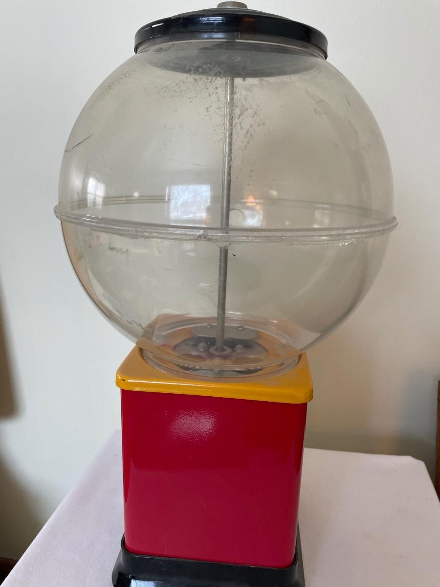 Gumball machine in good condition does have plastic globe. Do not have the key to remove the top.