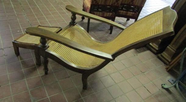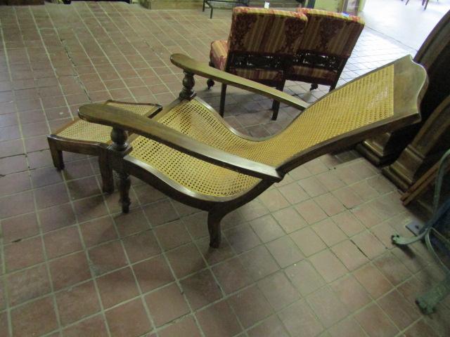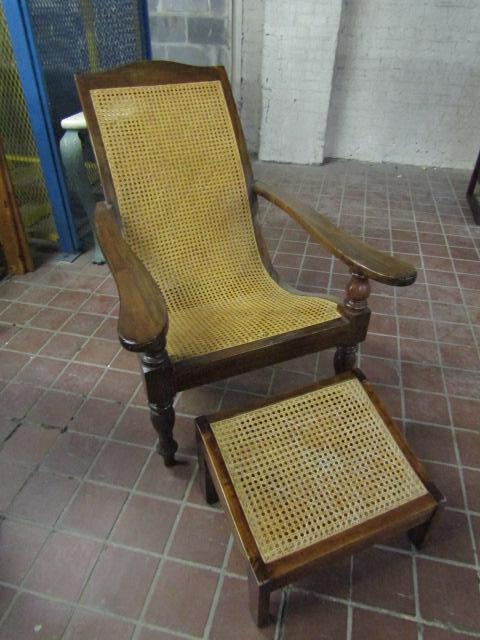 Vintage Cane Lounge Angle Chair with Ottoman LOC