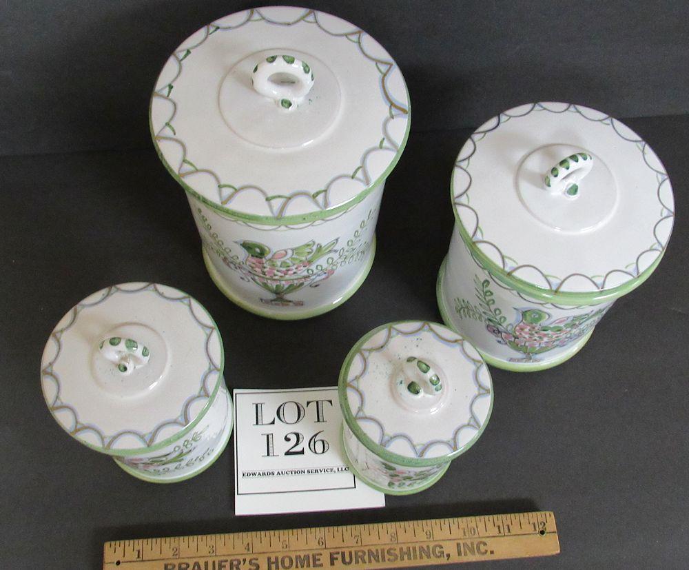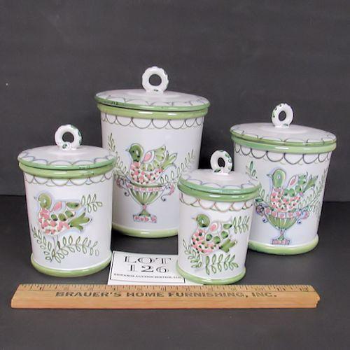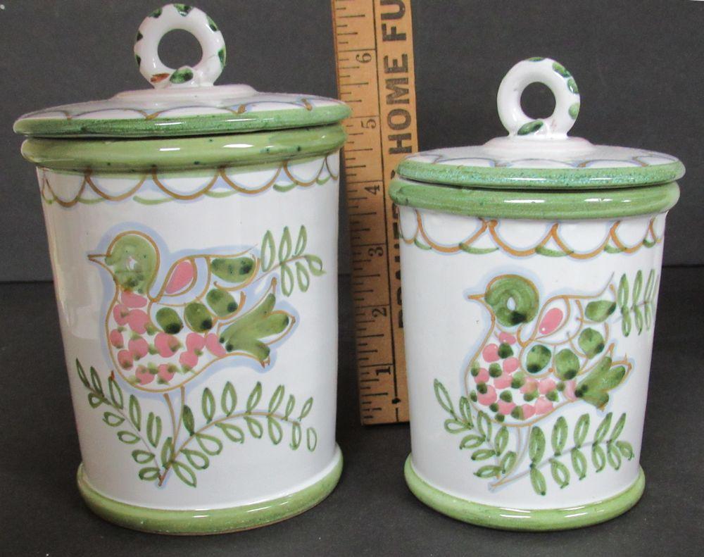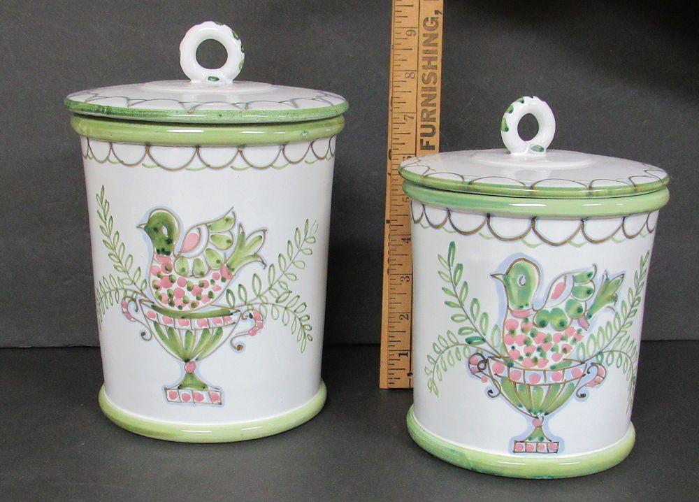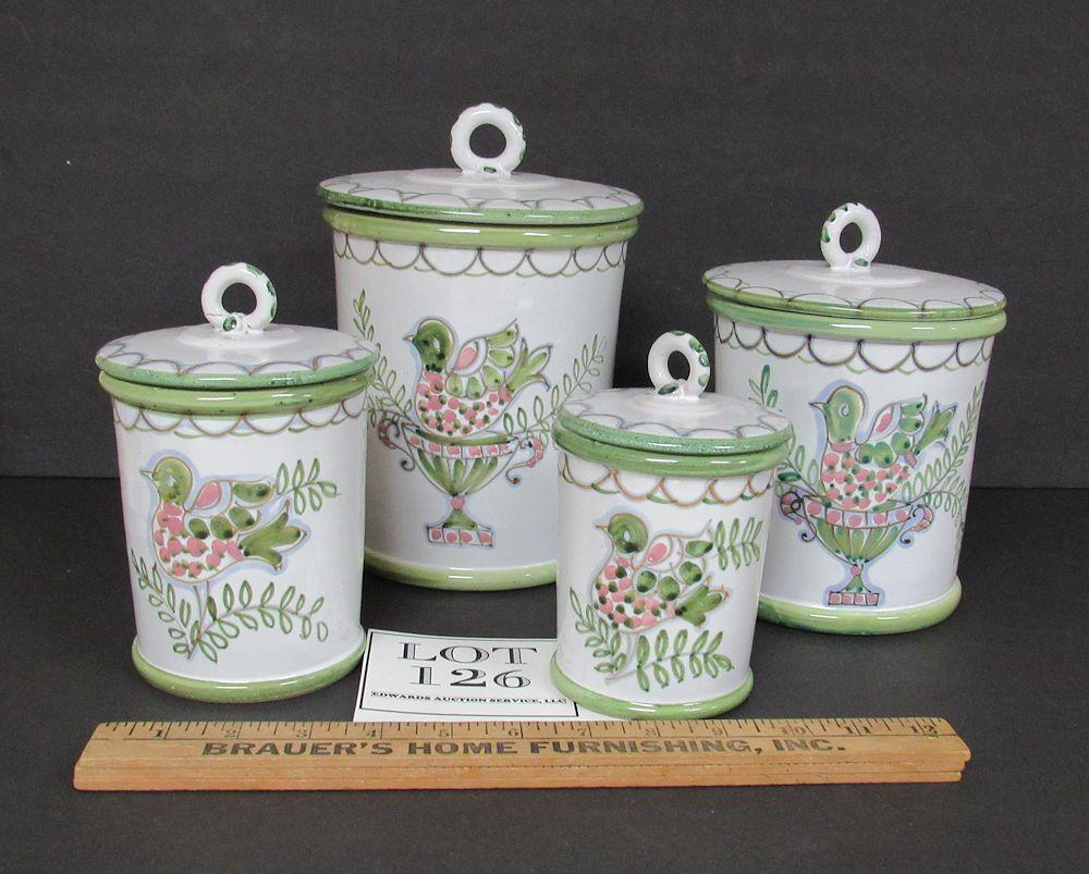 Vintage Canister Set With Fancy Bird Design, Made in Italy