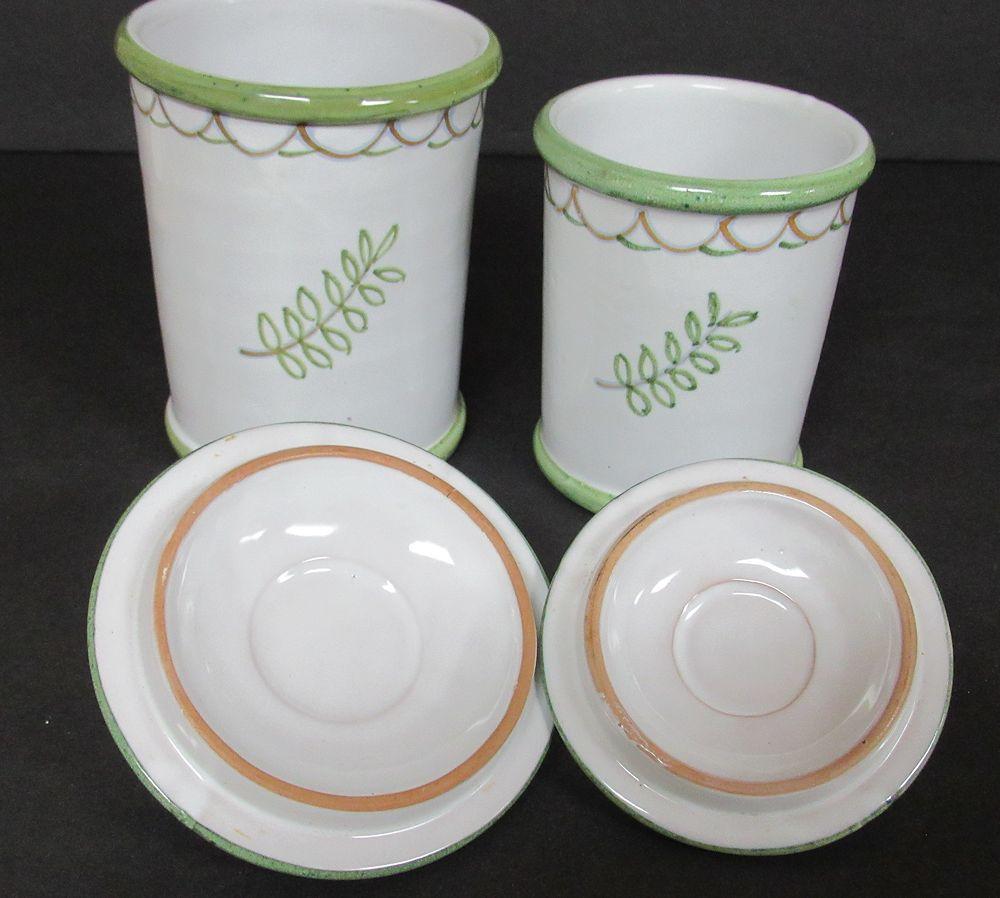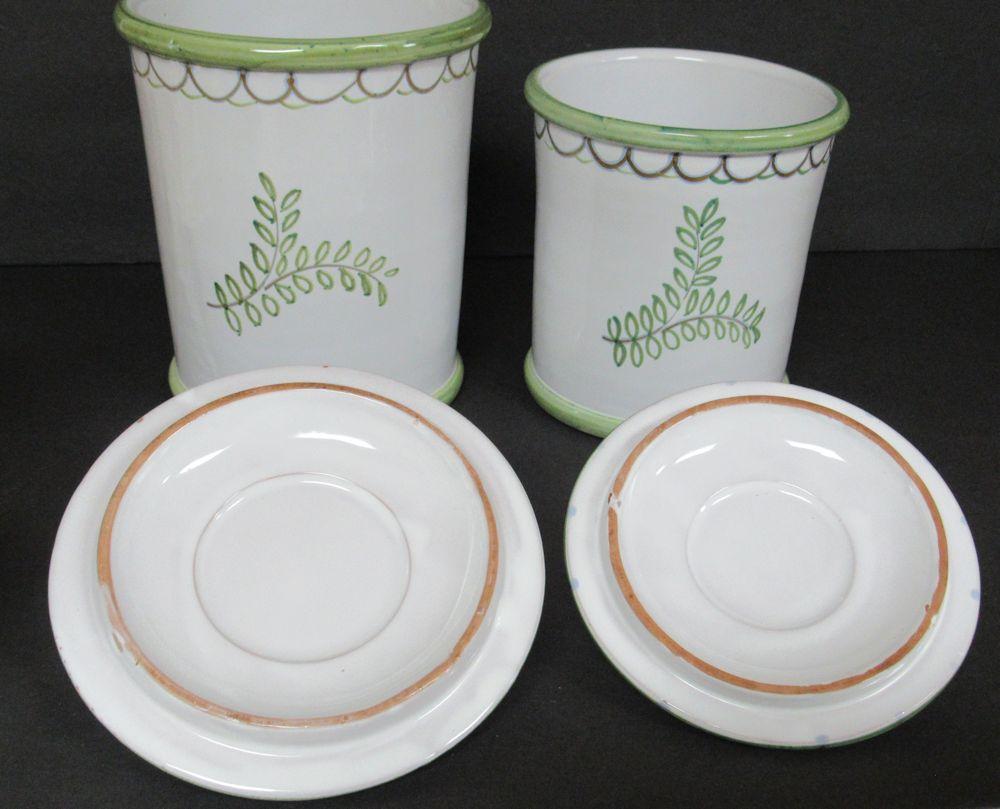 All canisters are good. 3 covers are good, the 2nd smallest cover has been broken at the handle and glued, see close up photos. Marked Italy. Very heavy to ship, will be two boxes. Shipping is available at shipping cost plus $5.00 handling fee on one box, $10.00 handling fee on two boxes, $15.00 handling fee on 3 boxes. Helps cover shipping materials and labor cost.