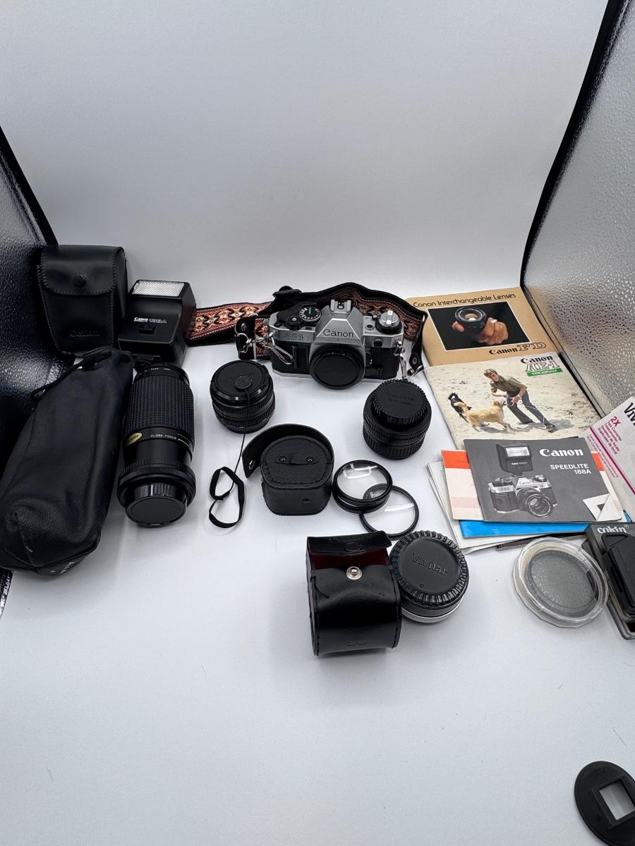Vintage Canon AE-1 Program Camera with Multiple Lenses/Attachments