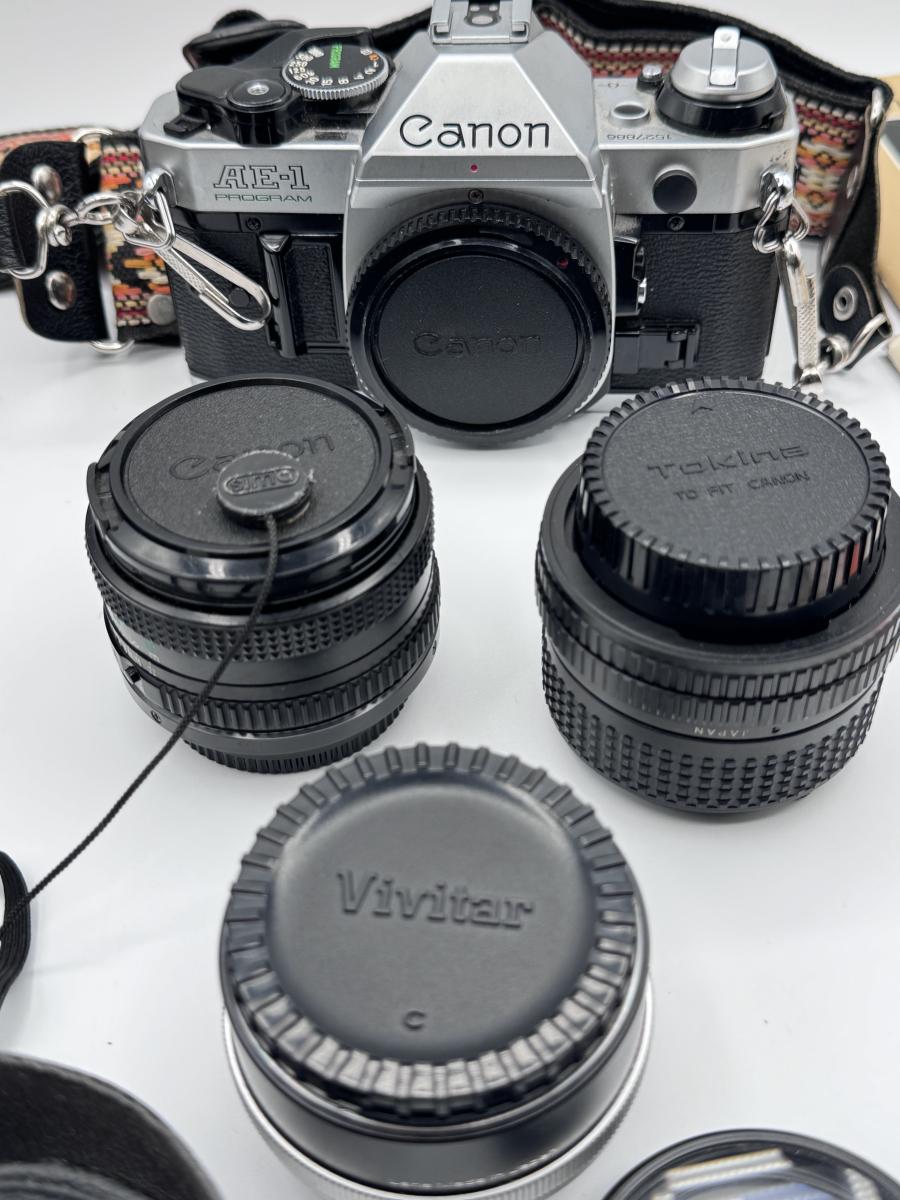 Vintage Canon AE-1 Program Camera with Multiple Lenses/Attachments