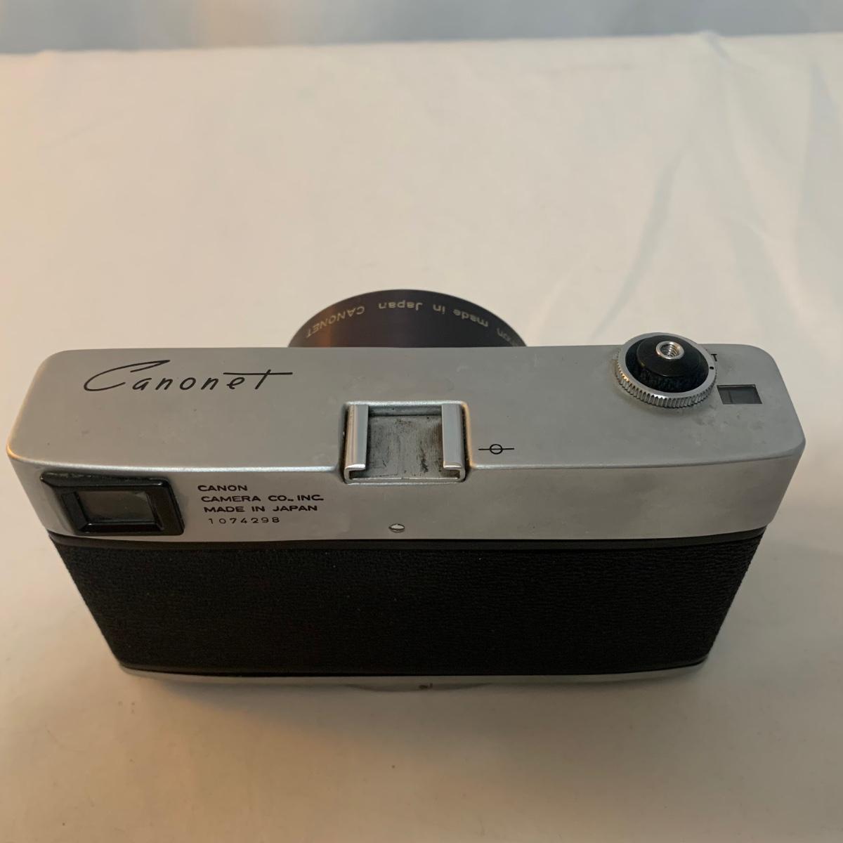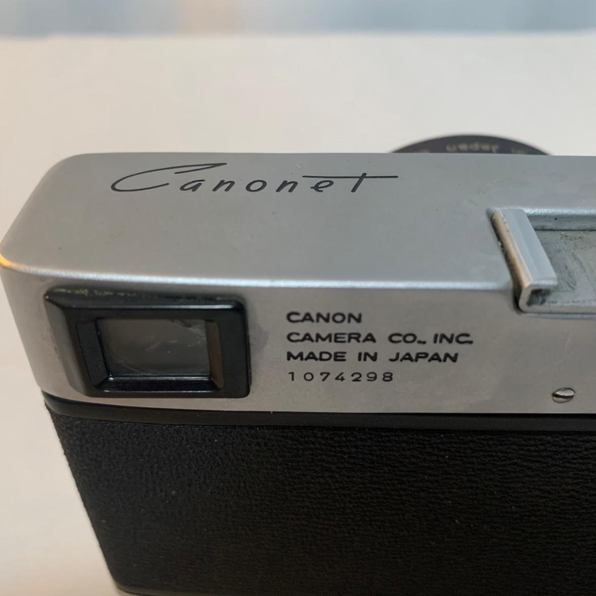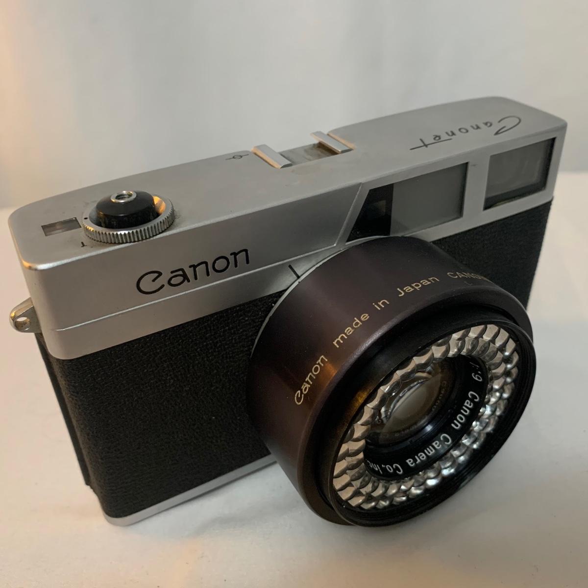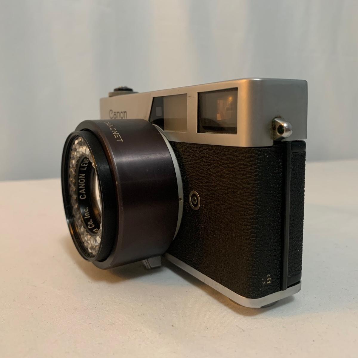 Canon Canonet Camera, made in Japan with Canon SE 45mm lens. Camera comes with case, extra lens case, and original owners manual. The camera has small crack in viewfinder, but this will not appear in developed photographs. Please note, lot does not include additional lens. What an iconic piece! Shipping available.