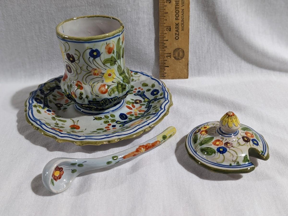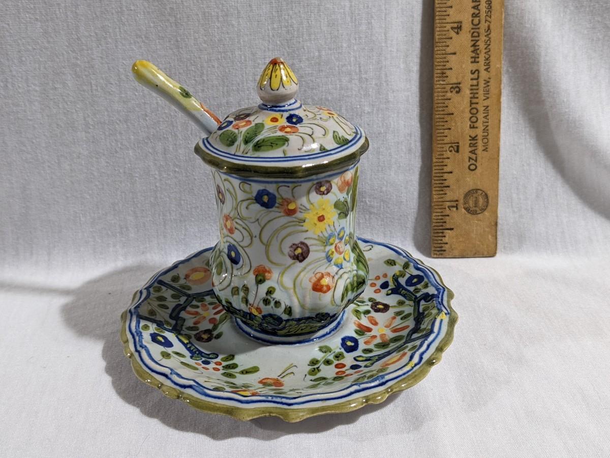Vintage Cantagalli, Majolica Hand painted Ceramic Mustard Pot