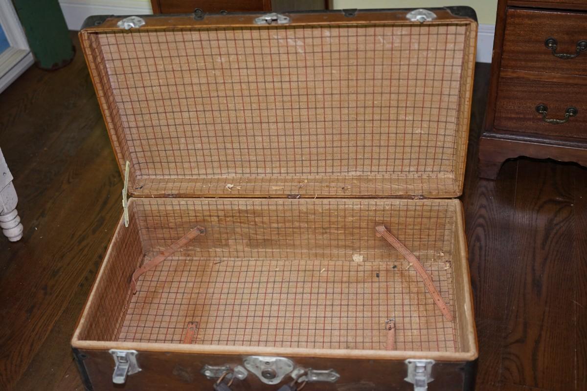 VINTAGE CANVAS SUITCASE W/ TRAVEL STICKERS