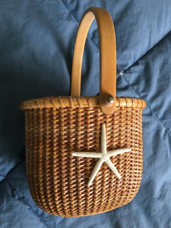 Vintage Cape Cod Basket with Sand Dollar 9”