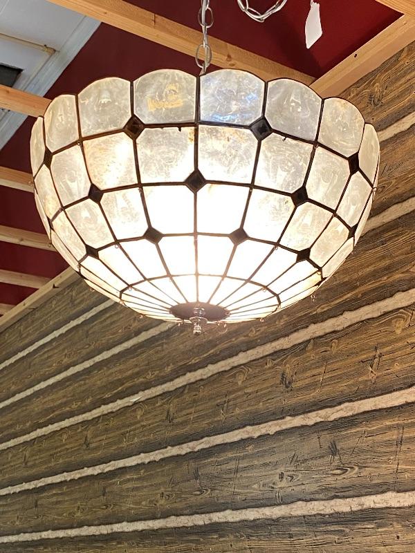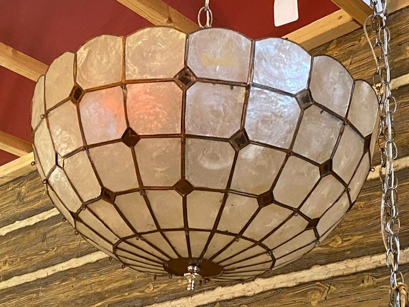 Lot # 125 -Vintage Capiz Shell Swag Light 10’ Chain 16” Diameter