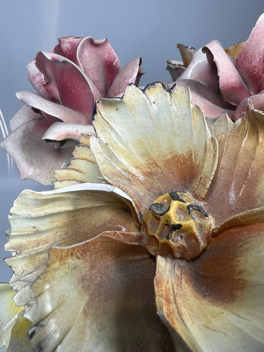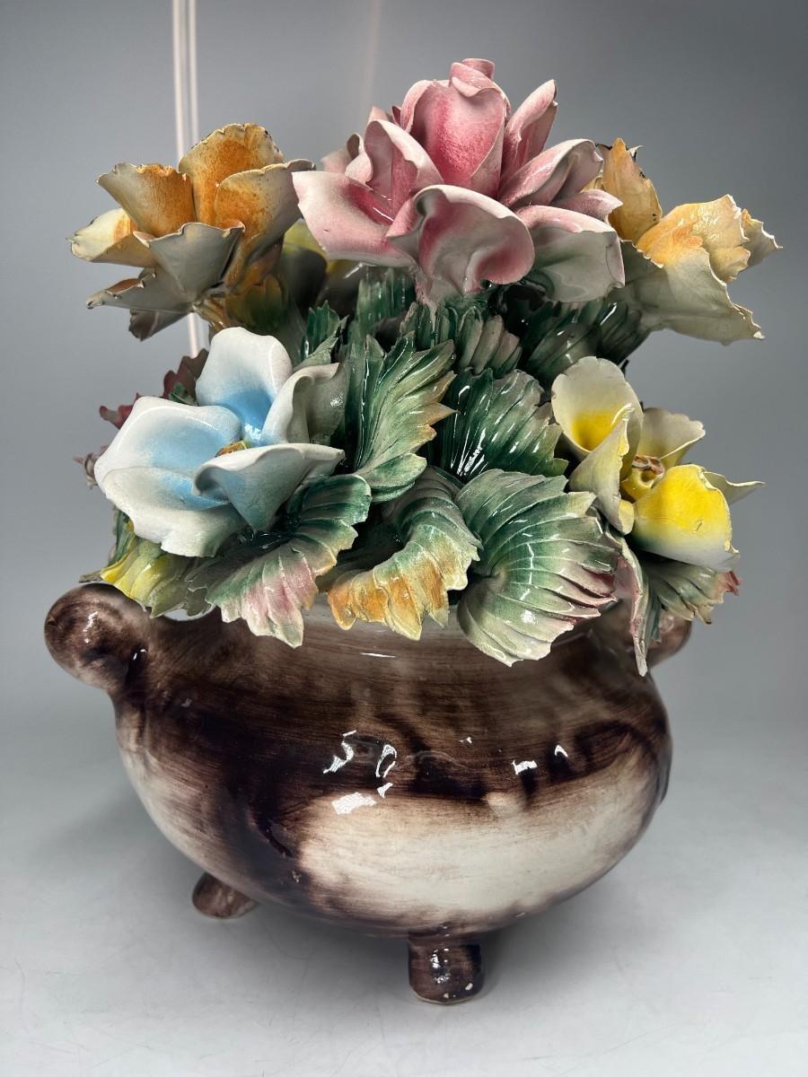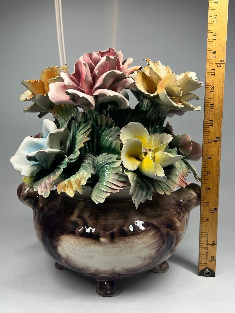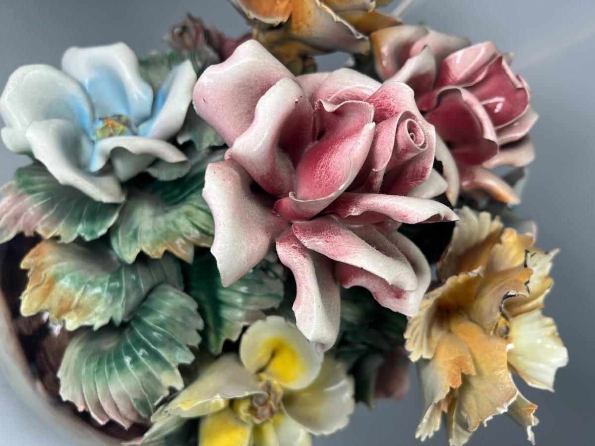 Vintage Capodimonte Handmade Ceramic Flower Basket Bouquet Bowl Sculpture