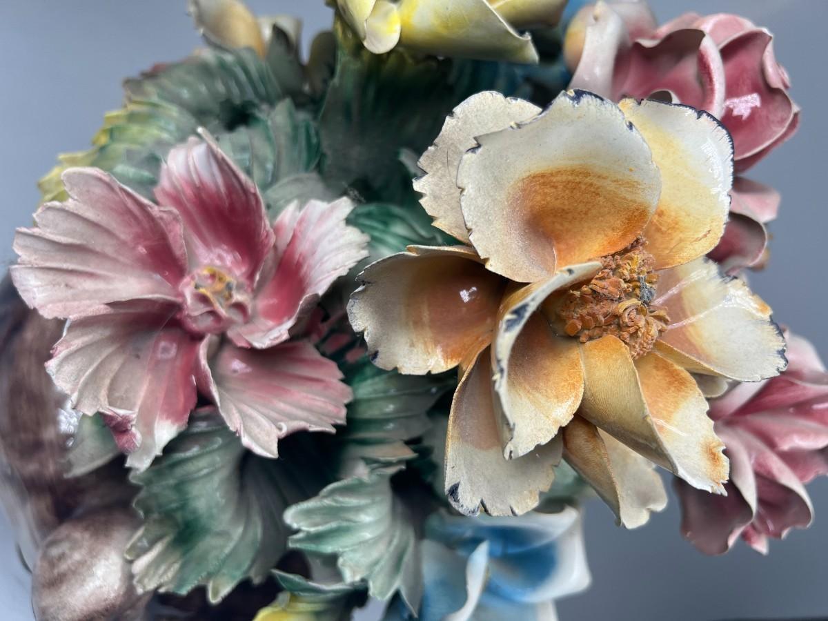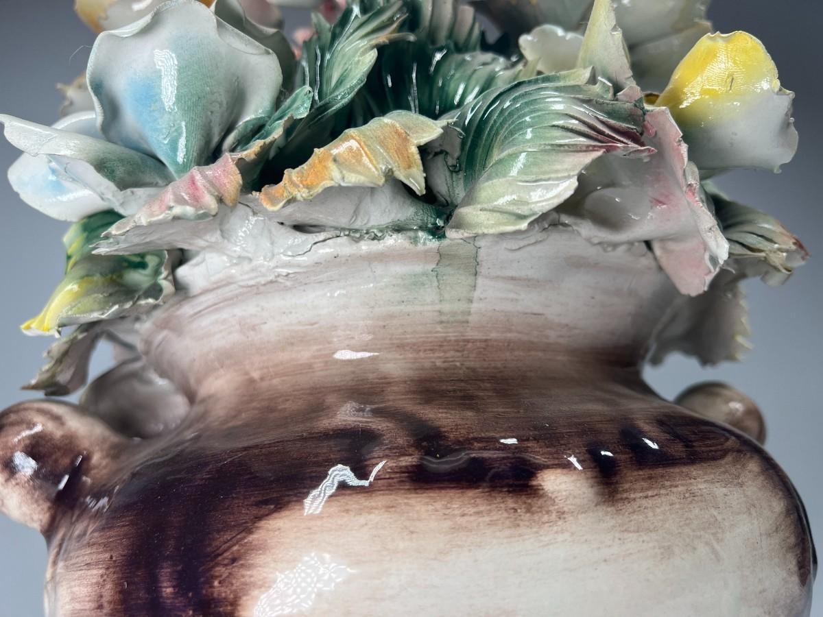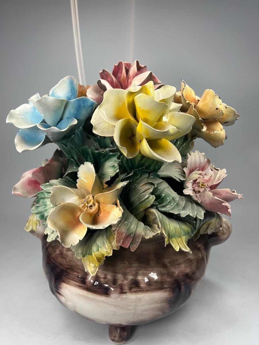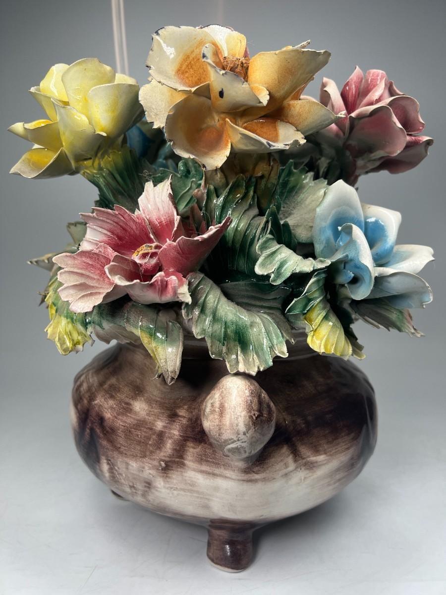 Vintage Capodimonte Handmade Ceramic Flower Basket Bouquet Bowl Sculpture