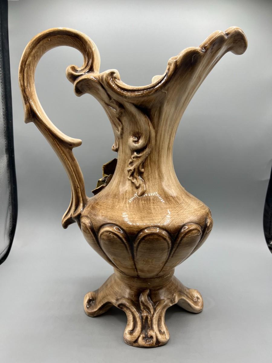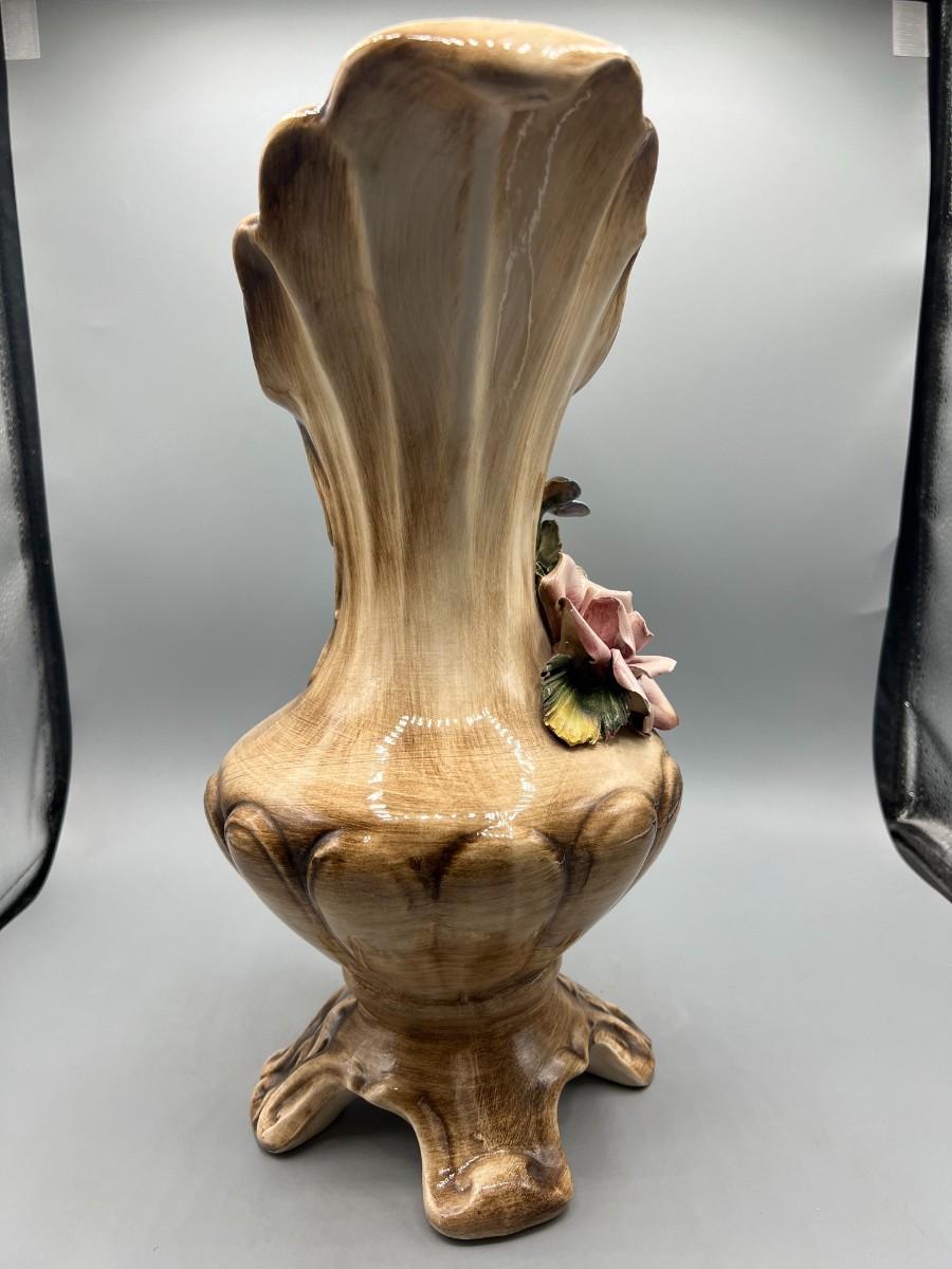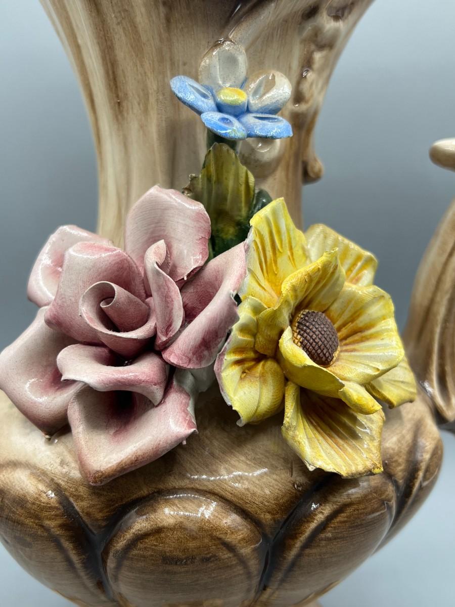 Vintage Capodimonte Porcelain Pottery Art Sun Flower Rose Ornate Decor Pitcher