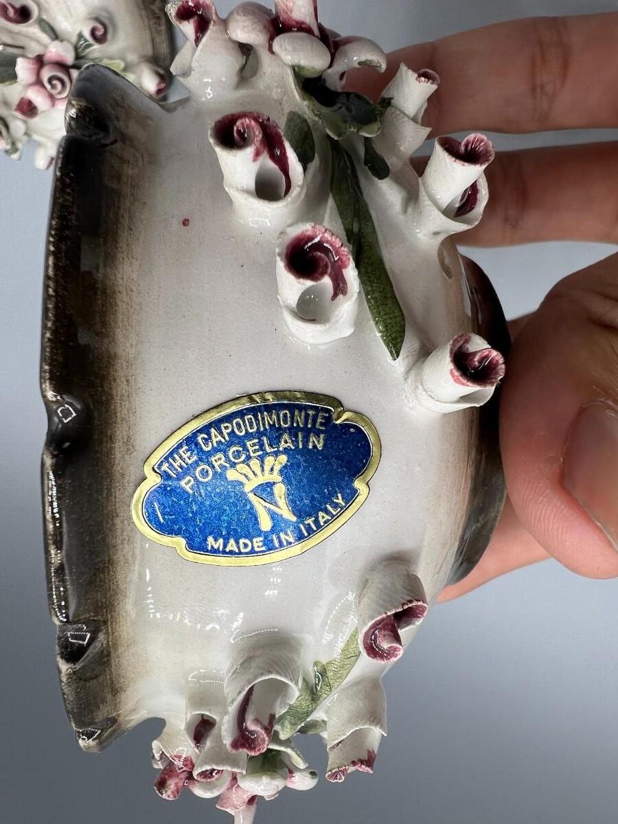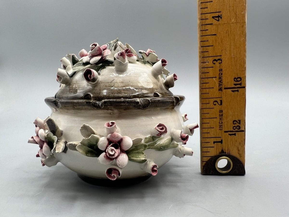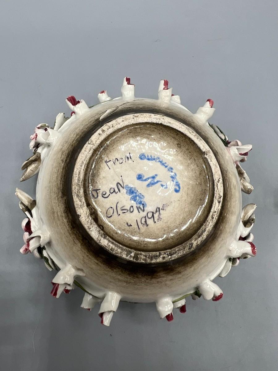 Vintage Capodimonte Porcelain Rose Bud Art Pottery Bowl