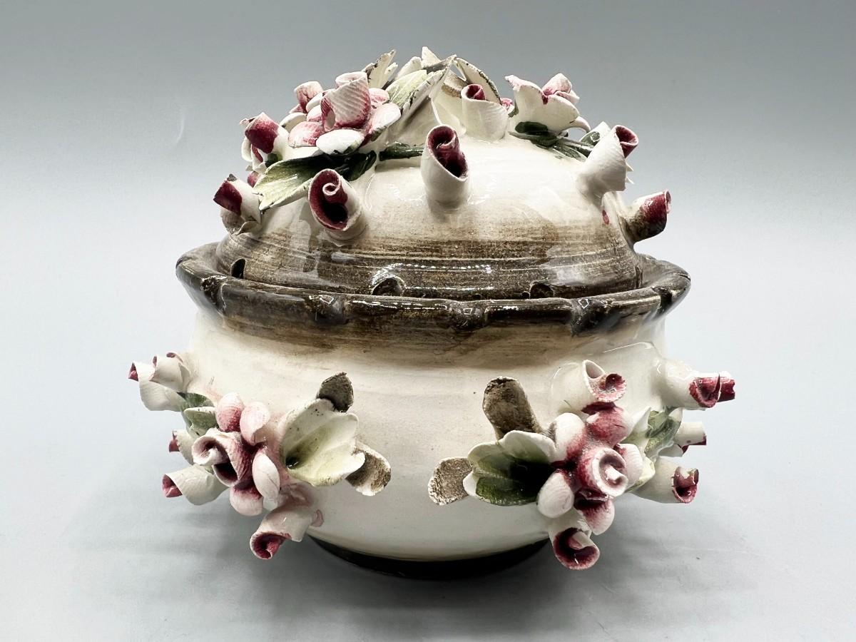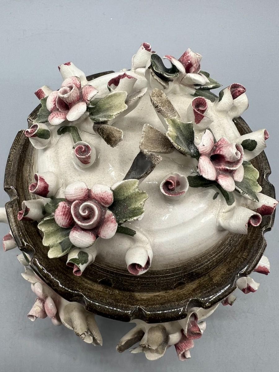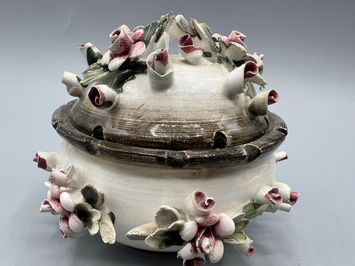 Vintage Capodimonte Porcelain Rose Bud Art Pottery Bowl