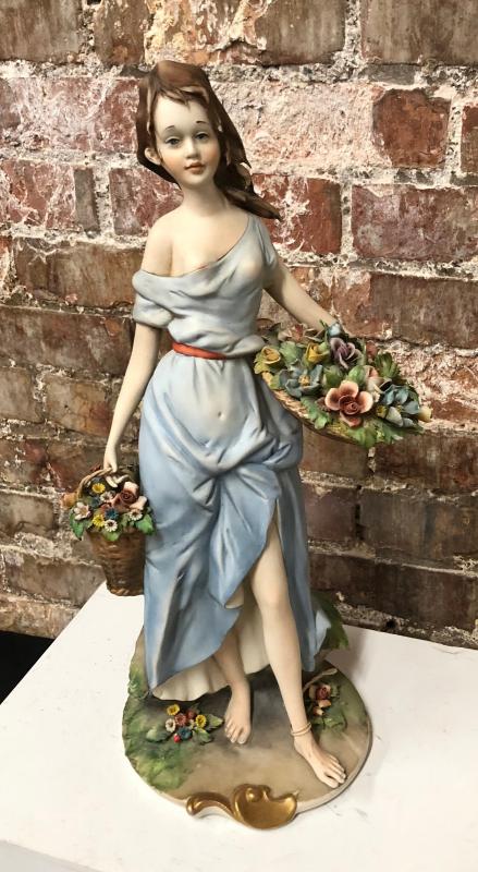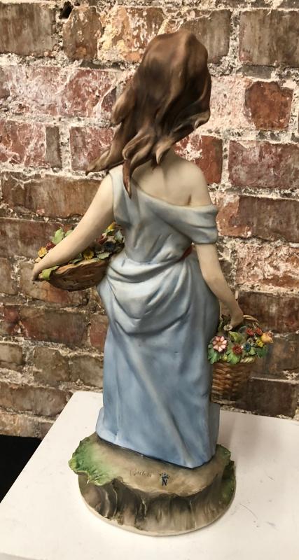 "Girl with Flowers"..signed Italian Capodimonte 15" statue..Signed Barbetta....