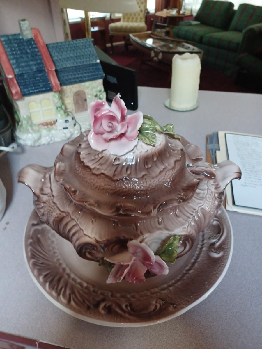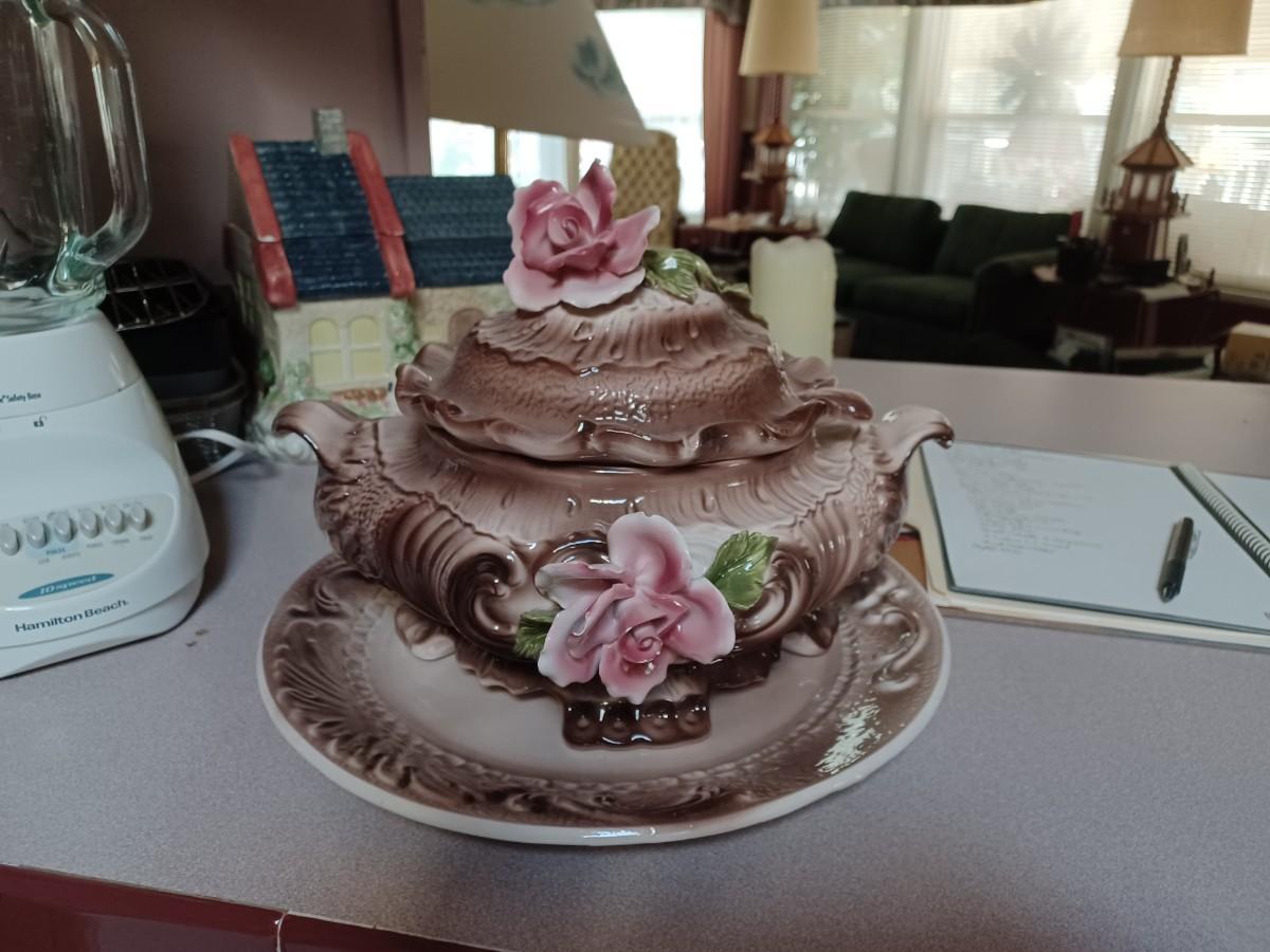Vintage Capodimonte Very Large Porcelain Tureen Centerpiece With Platter