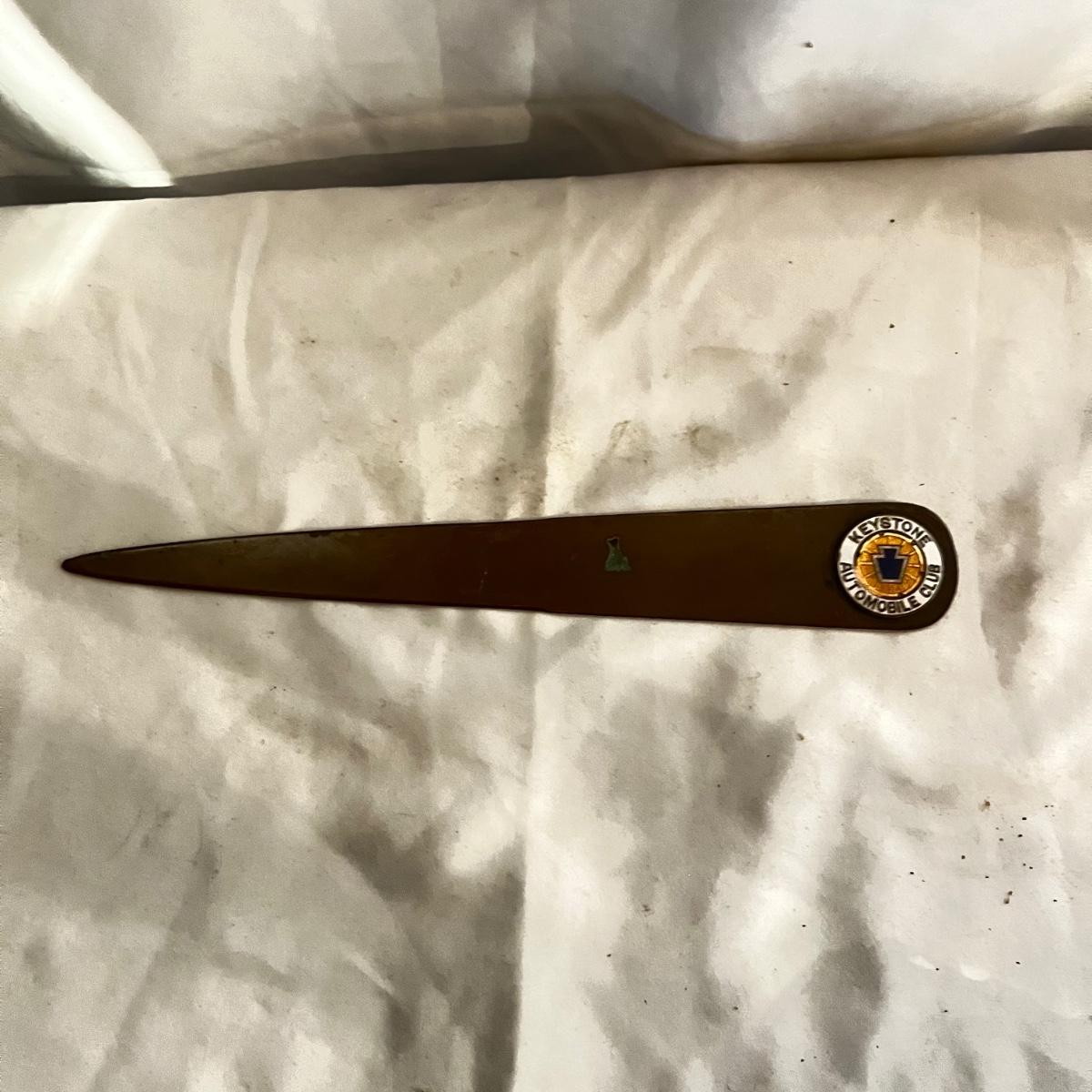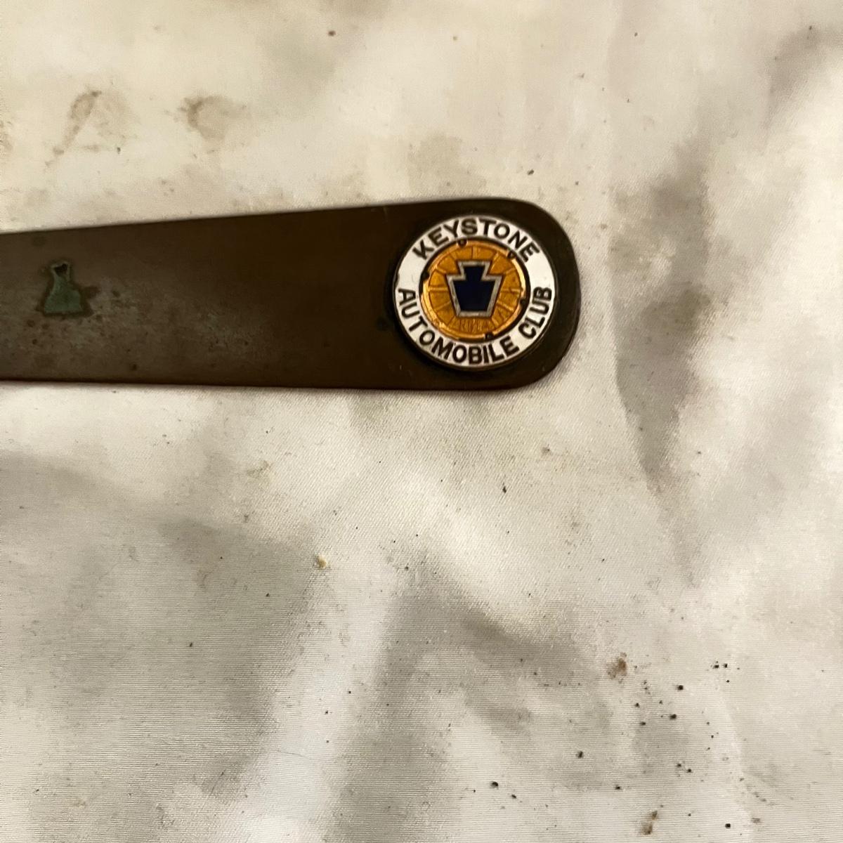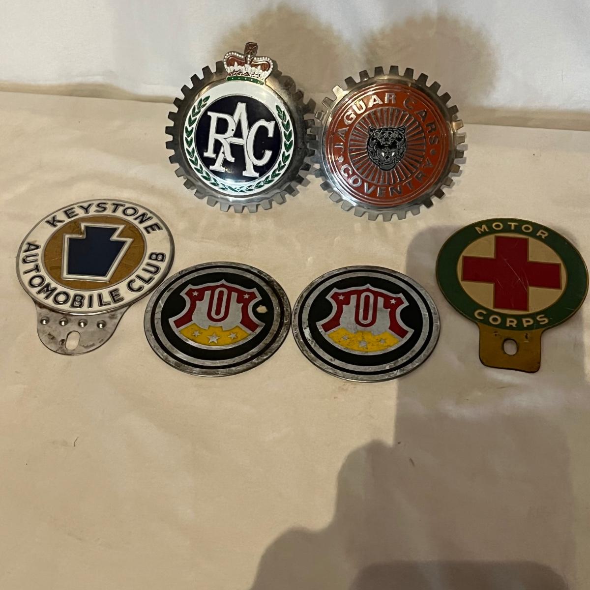 Lot includes a Royal Auto Club badge, Jaguar Cars Coventry badge, Red Cross Motor Corps badge, Keystone Automobile Club badge and letter opener and two badges that appear to be from a Oldsmobile. Keystone badge measures 3.75” x 4.75”. Also includes Jack Black dealer insignia.