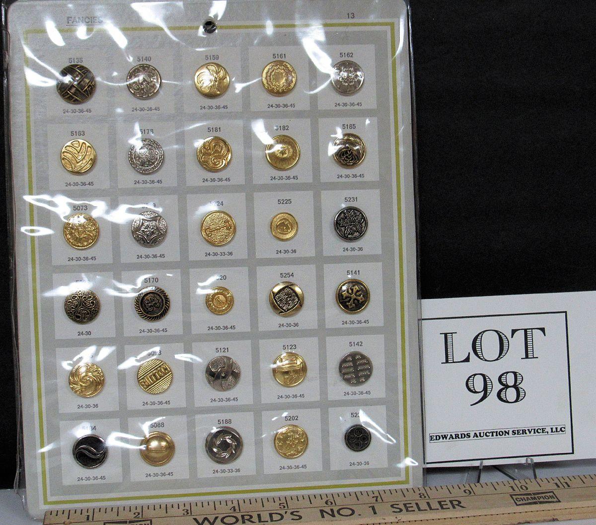Vintage Card of Salesman's Sample Buttons, Fancies, 30 Buttons