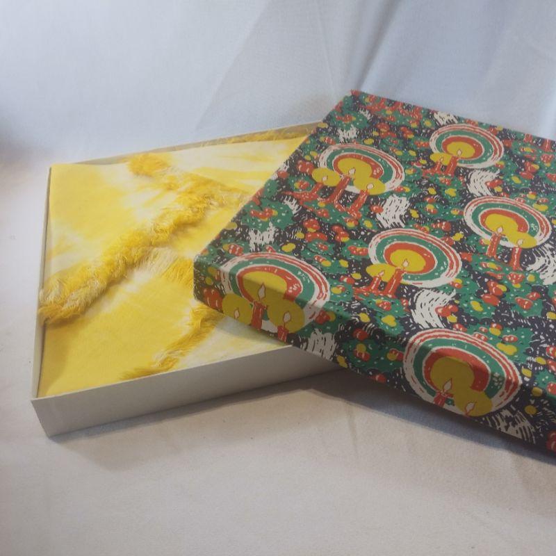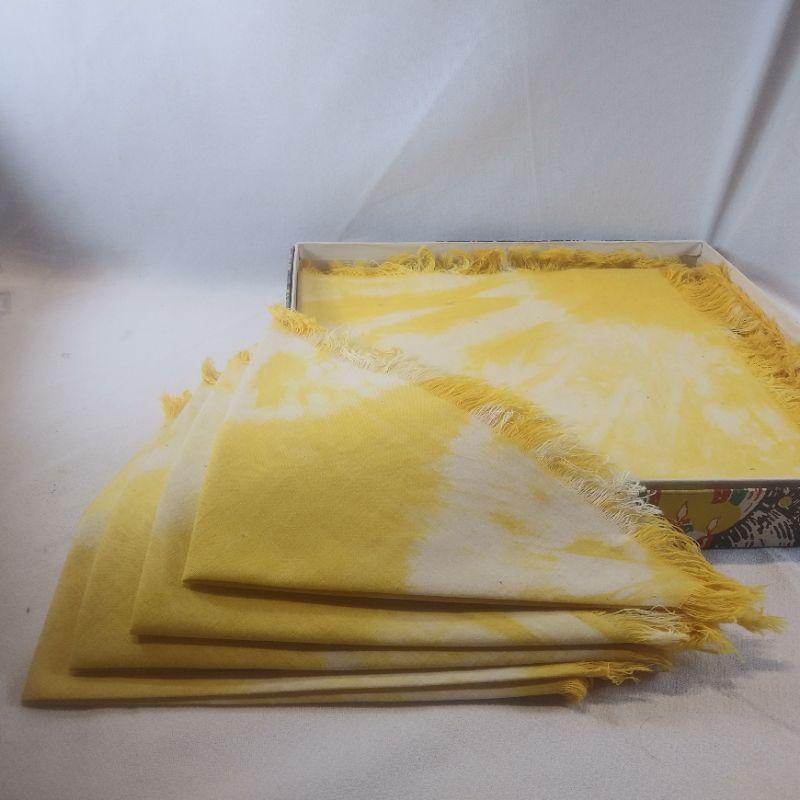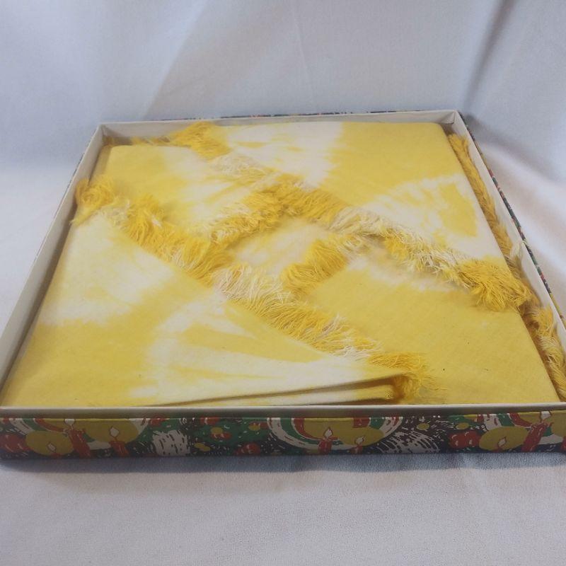 Vintage tied-dyed-look cotton Card Table Cloth with matching Napkins (4). Unused, still in original gift box. Straight out of the cedar chest. Just in time for a Spring or Summer party.
