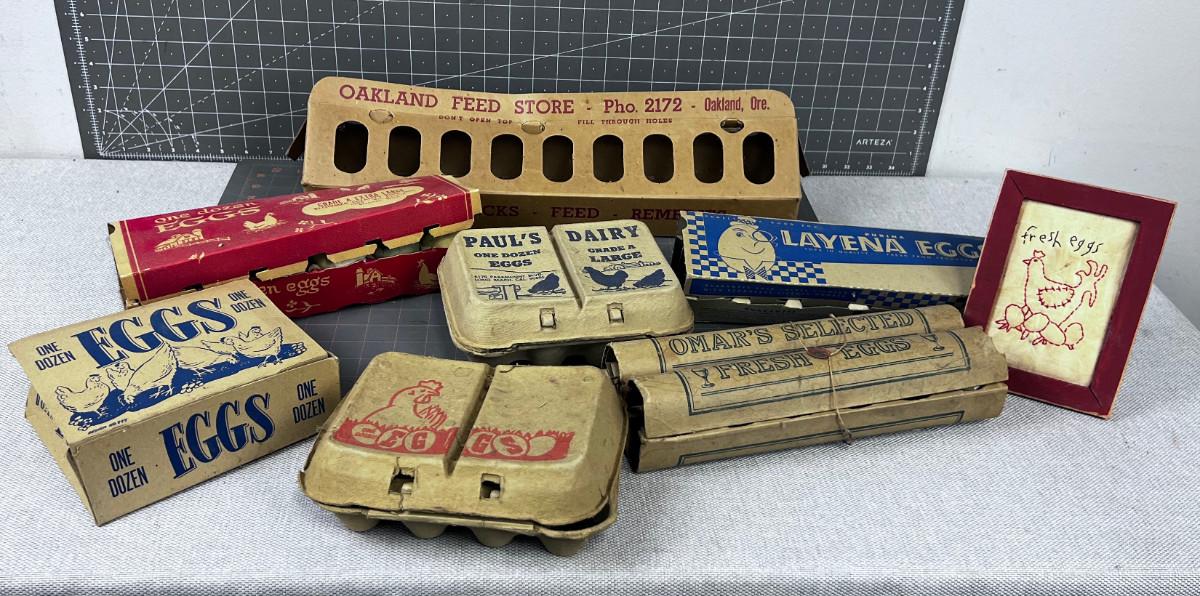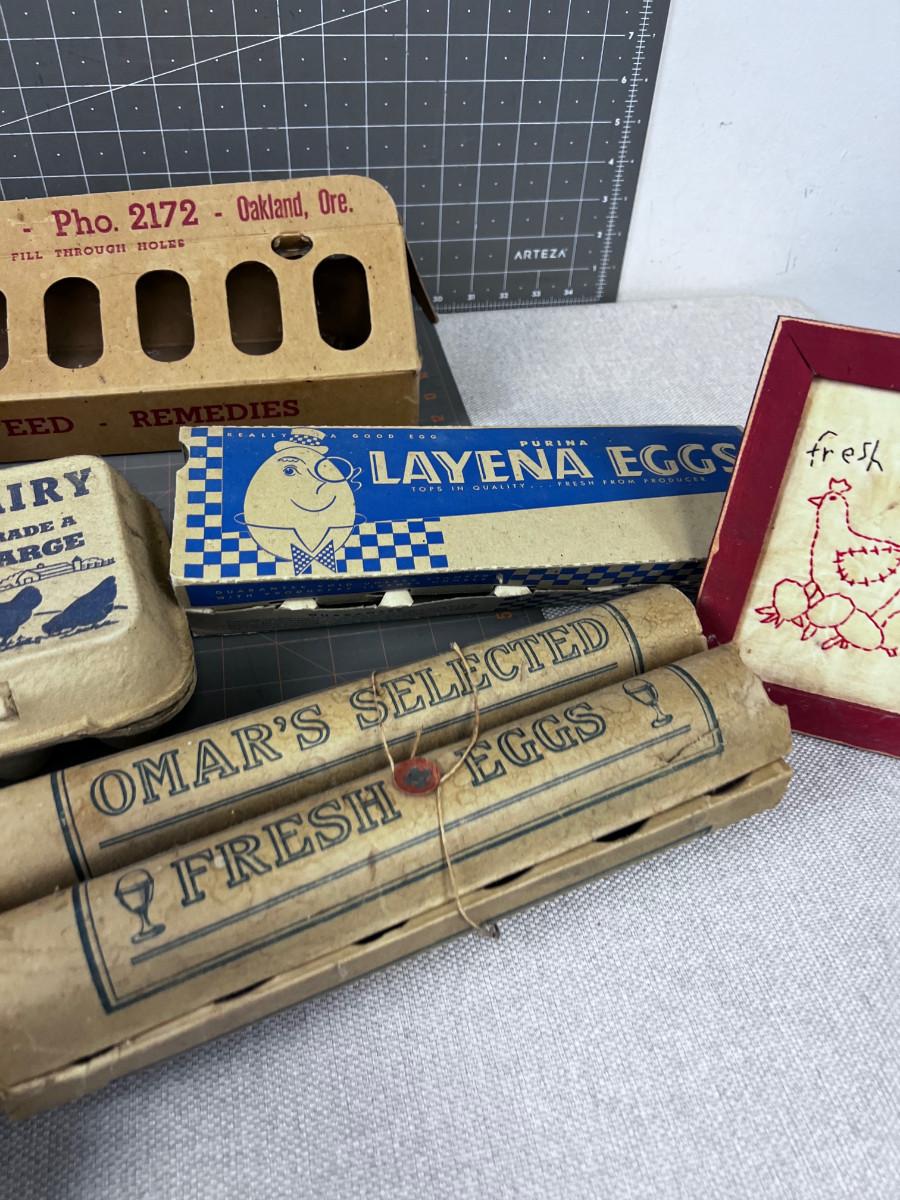 Vintage Cardboard EGG Cartons & Chicken Feeder