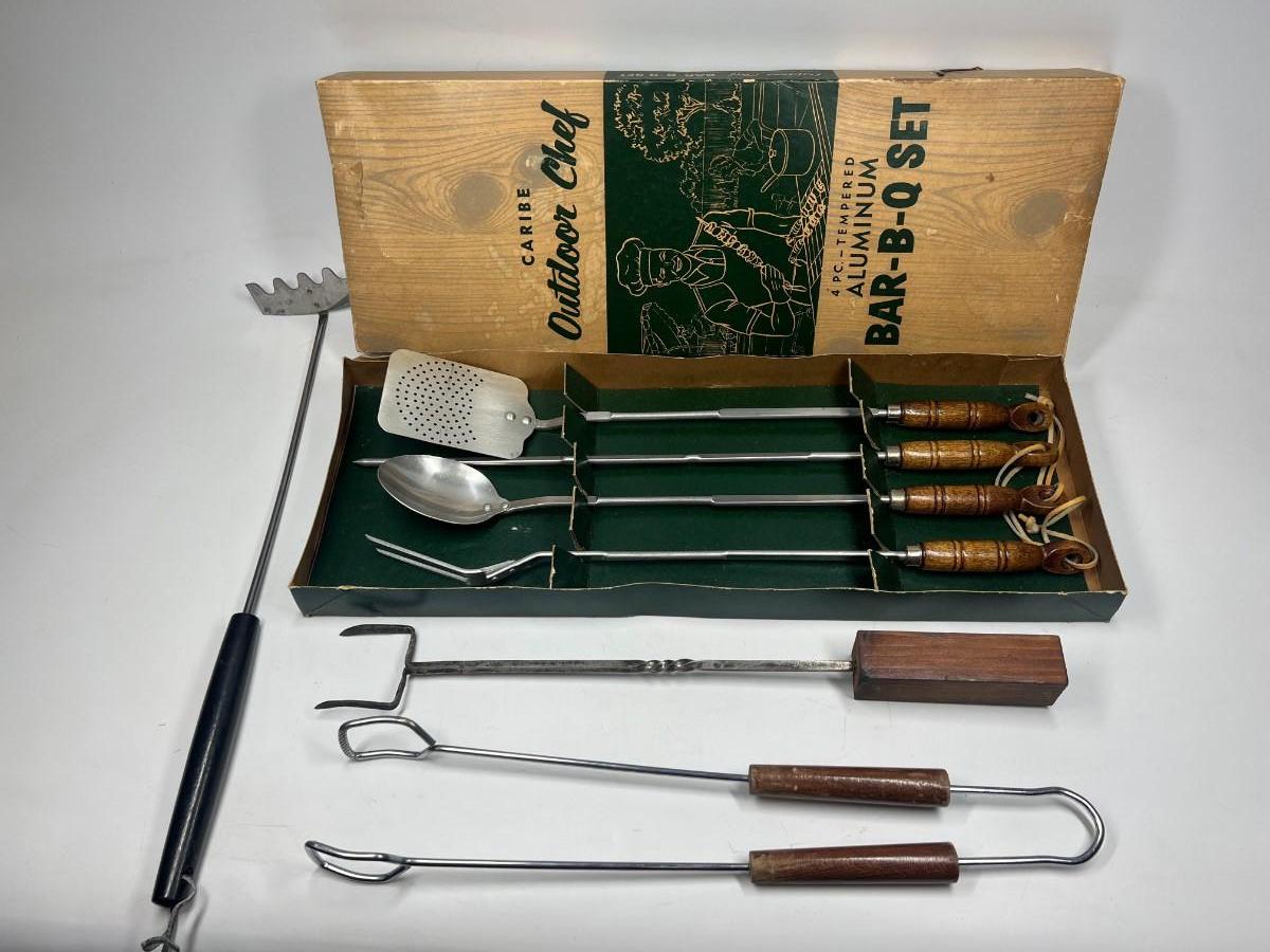 Vintage Caribe Outdoor Chef 4 Pc Tempered Aluminum Bar-B-Q-Set & Other Grilling Outdoor Utensils