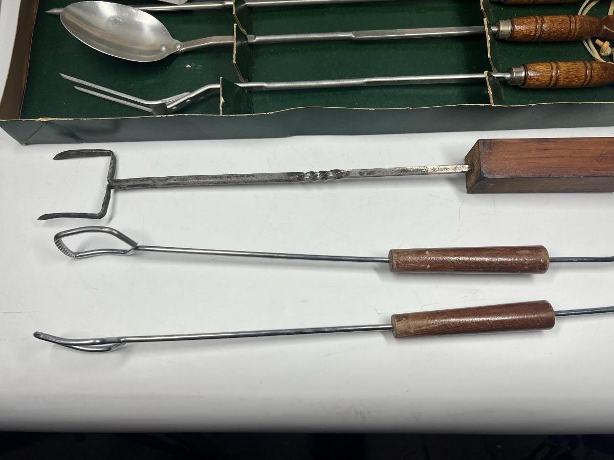 There are signs of use and wear to all of the utensils in this lot, but there is no significant damage and is in overall good collectible or useable condition. Check pictures for more details and for sizing.