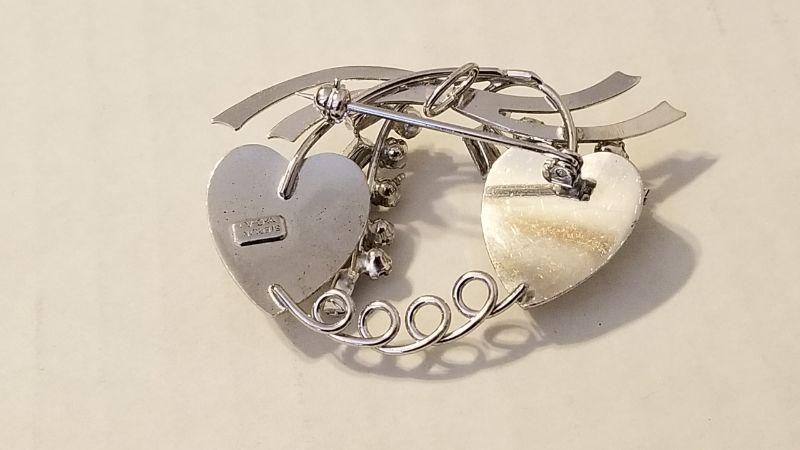 Signed with makers mark, stamped sterling, double heart wreath style brooch pin.