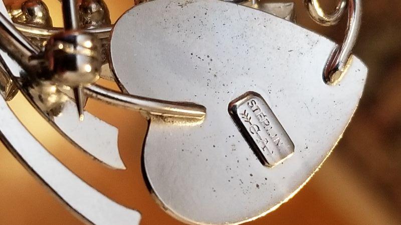 Signed with makers mark, stamped sterling, double heart wreath style brooch pin.