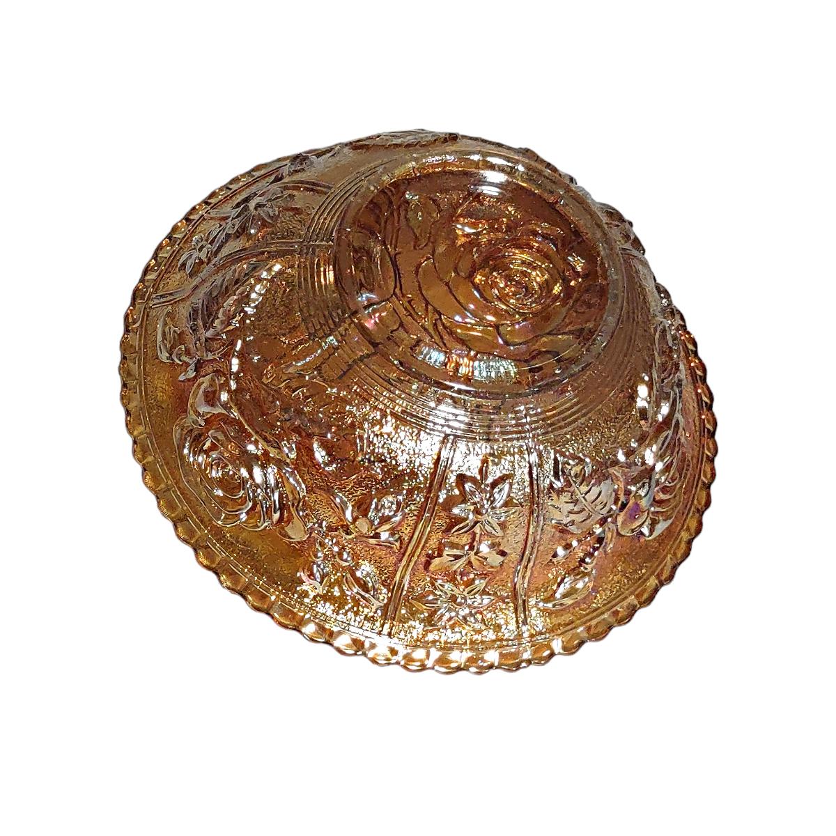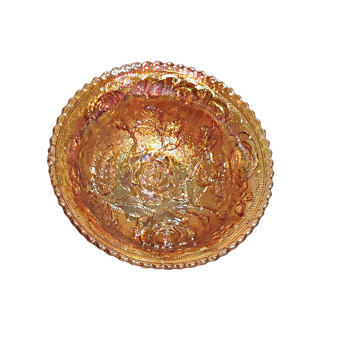 - Vintage Imperial Open Rose Marigold Carnival Luster Glass Fruit/Dessert Bowl
