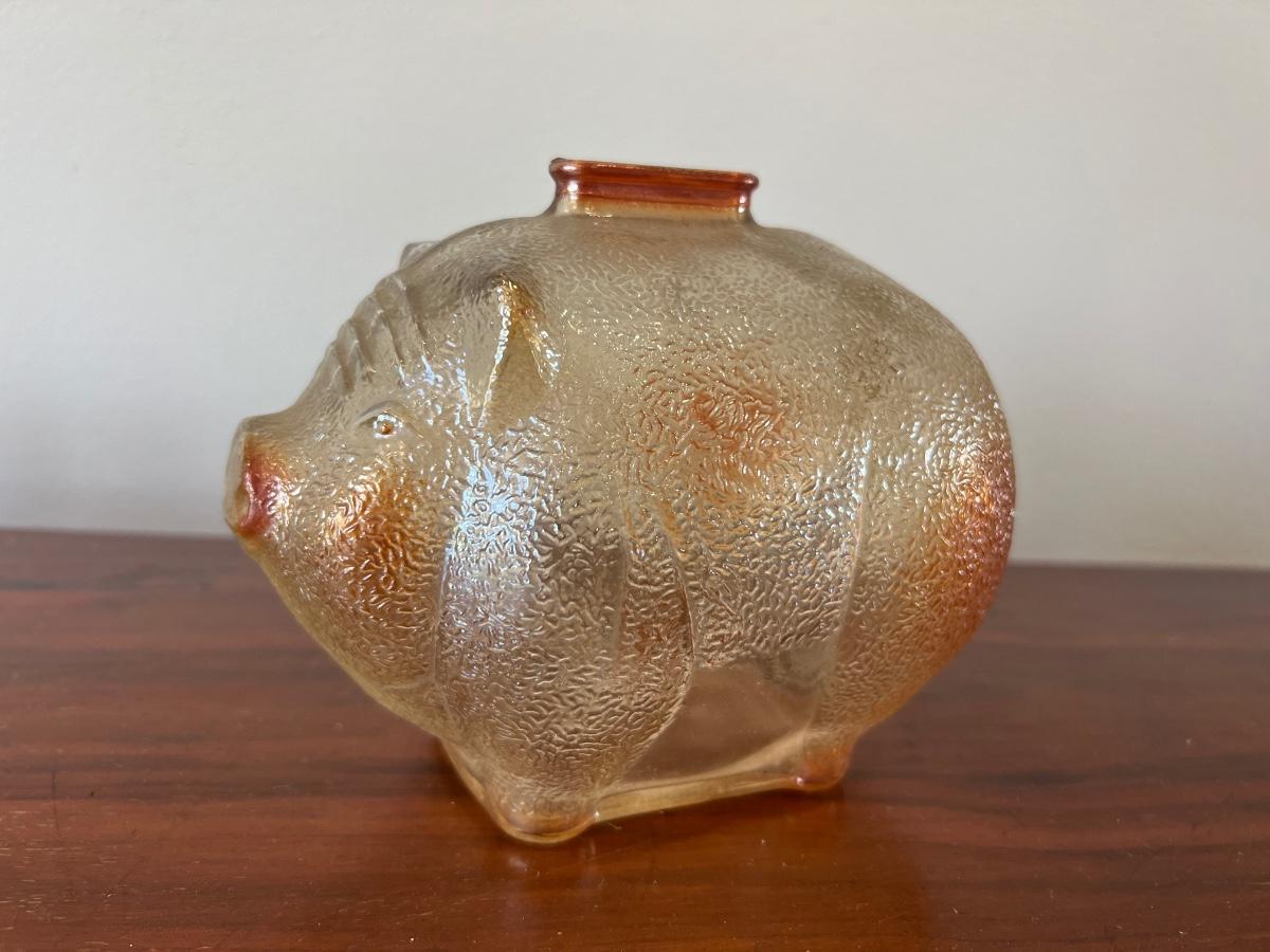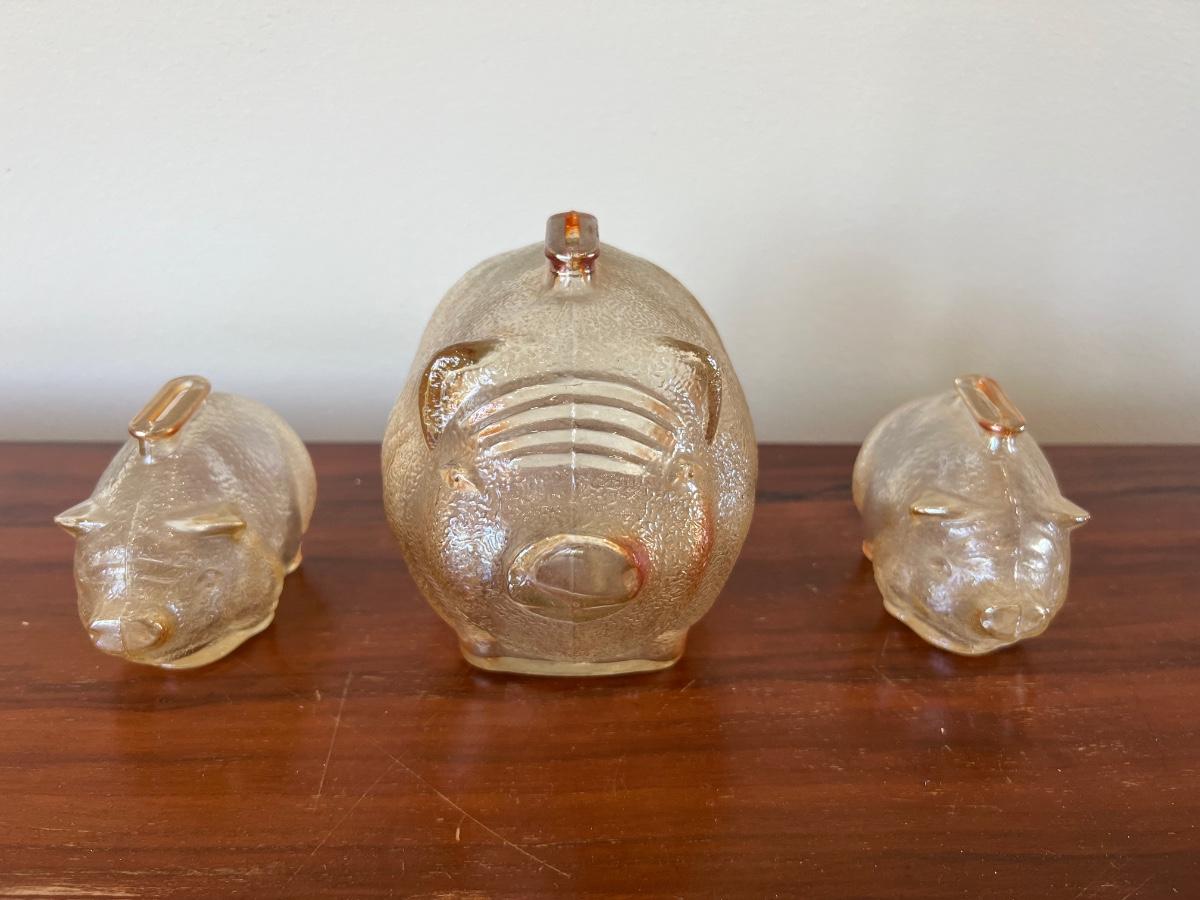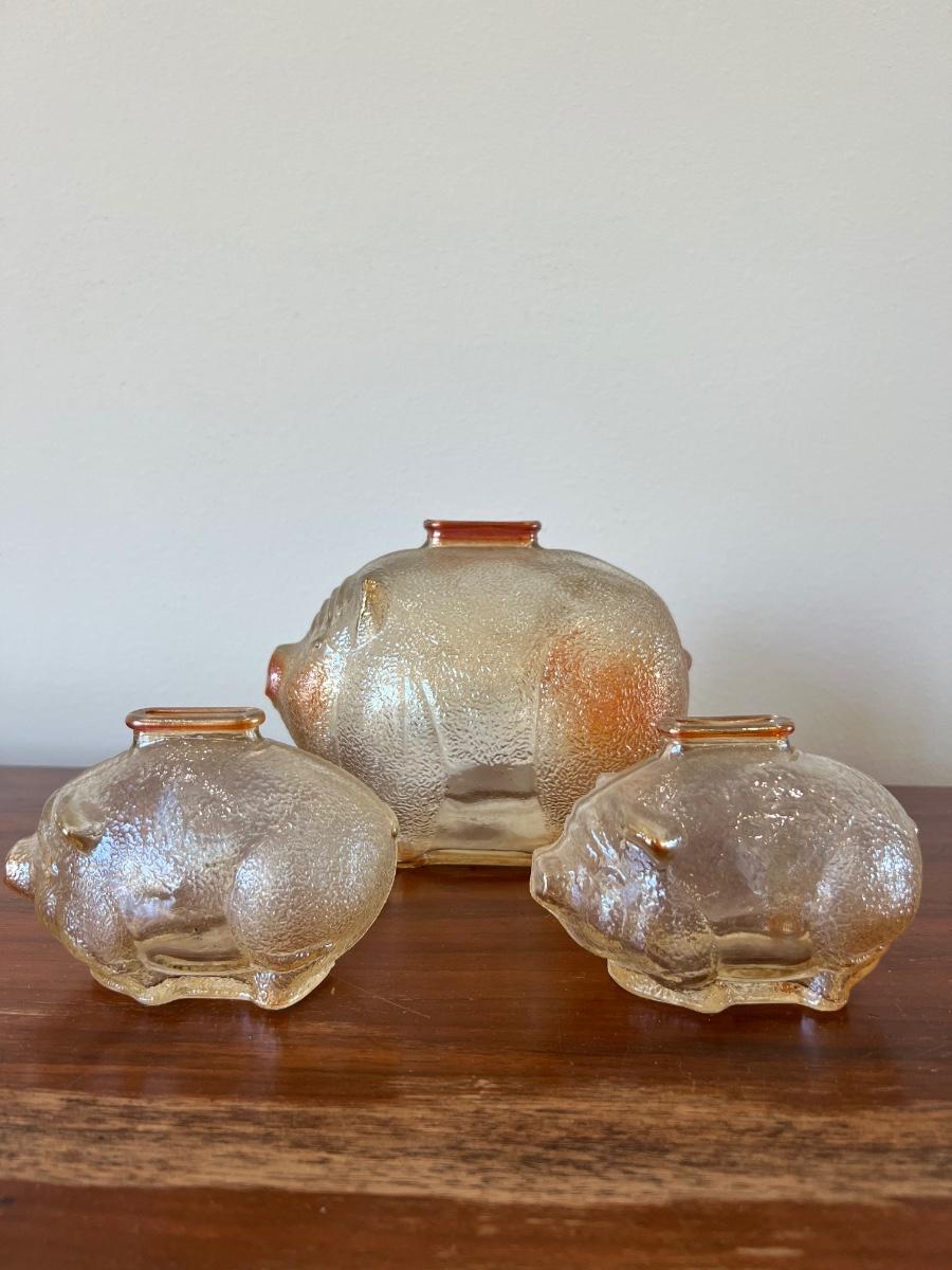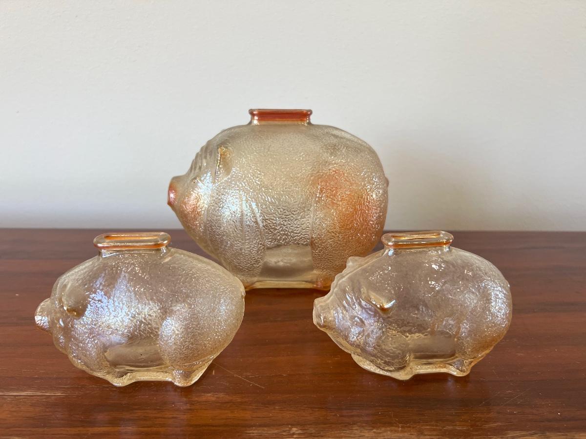Vintage Carnival Glass Piggy Bank Set