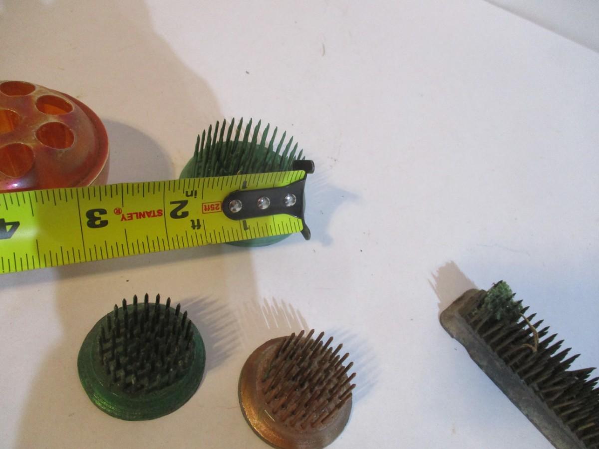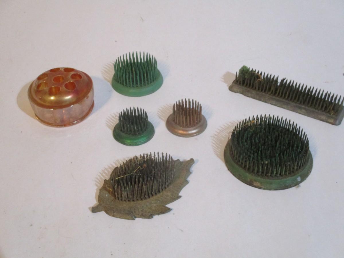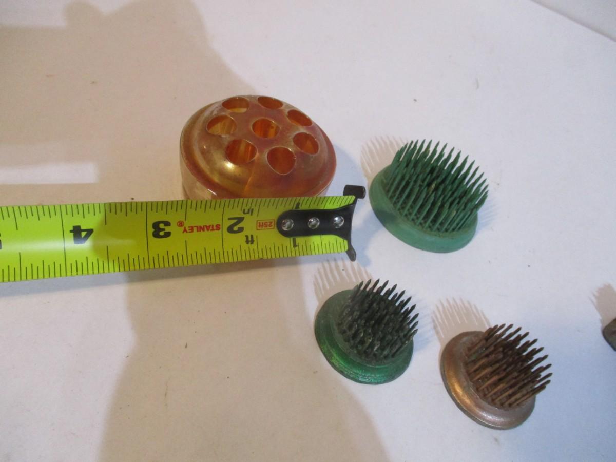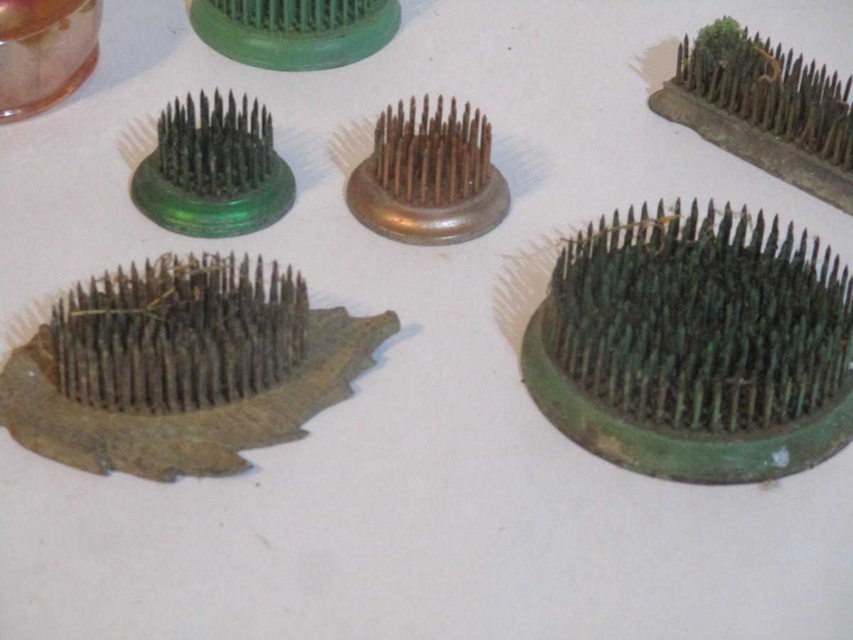 Vintage Carnival Glass & Spiked Flower Arrangement Frogs
