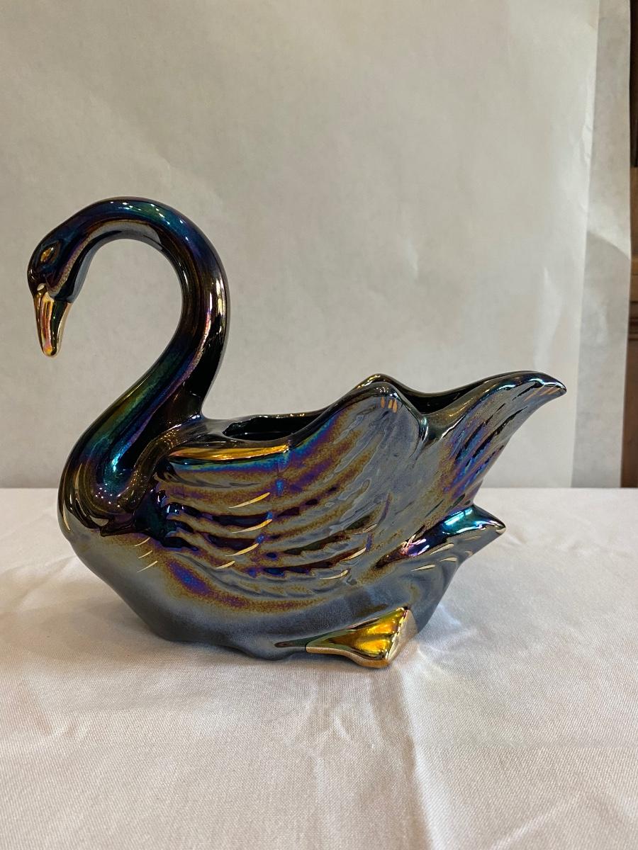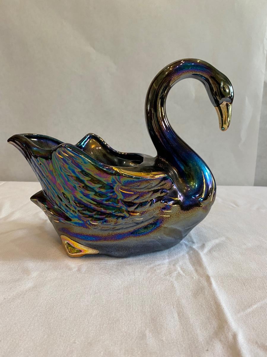 Vintage carnival glass Swan planter