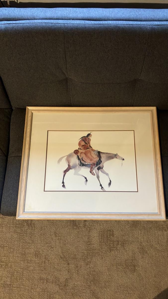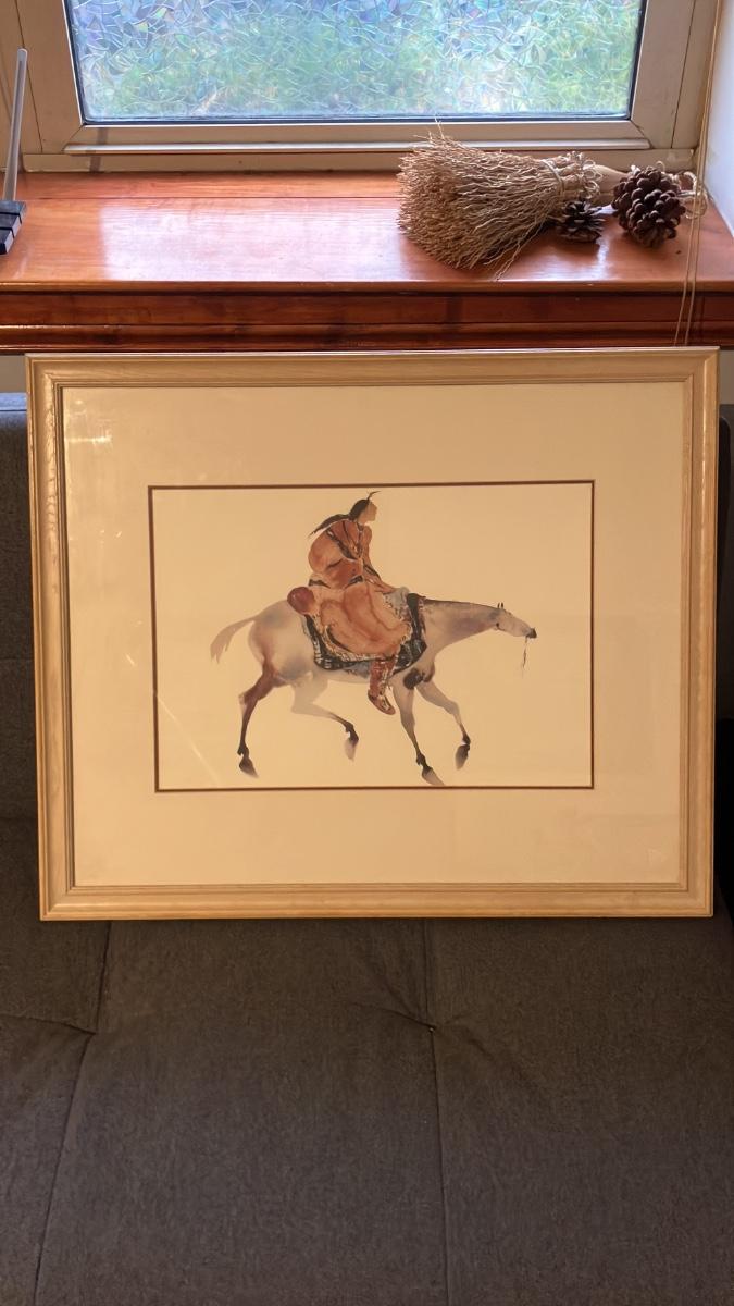 Vintage Carol Grigg Framed Art Print - Native American Woman on Horseback, Southwestern Decor