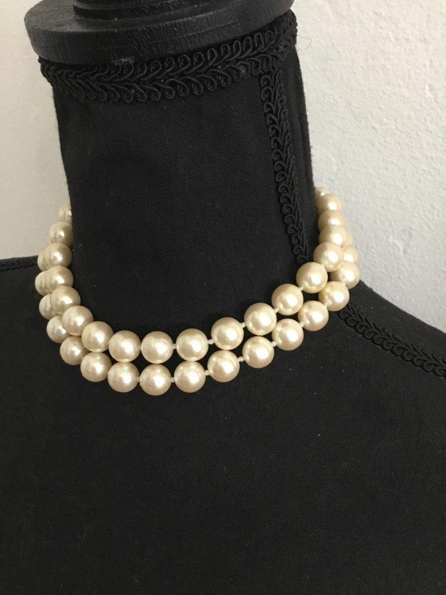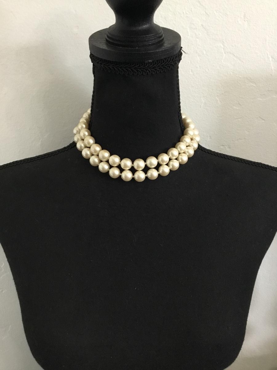 Vintage CaroLee Silver-tone faux, pearl double strand choker
