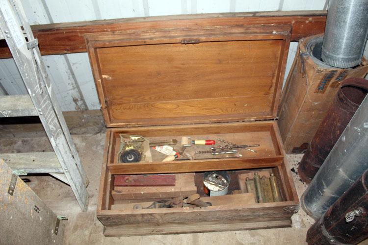 Vintage Carpenter's tool box with tools, top is loose (#250)