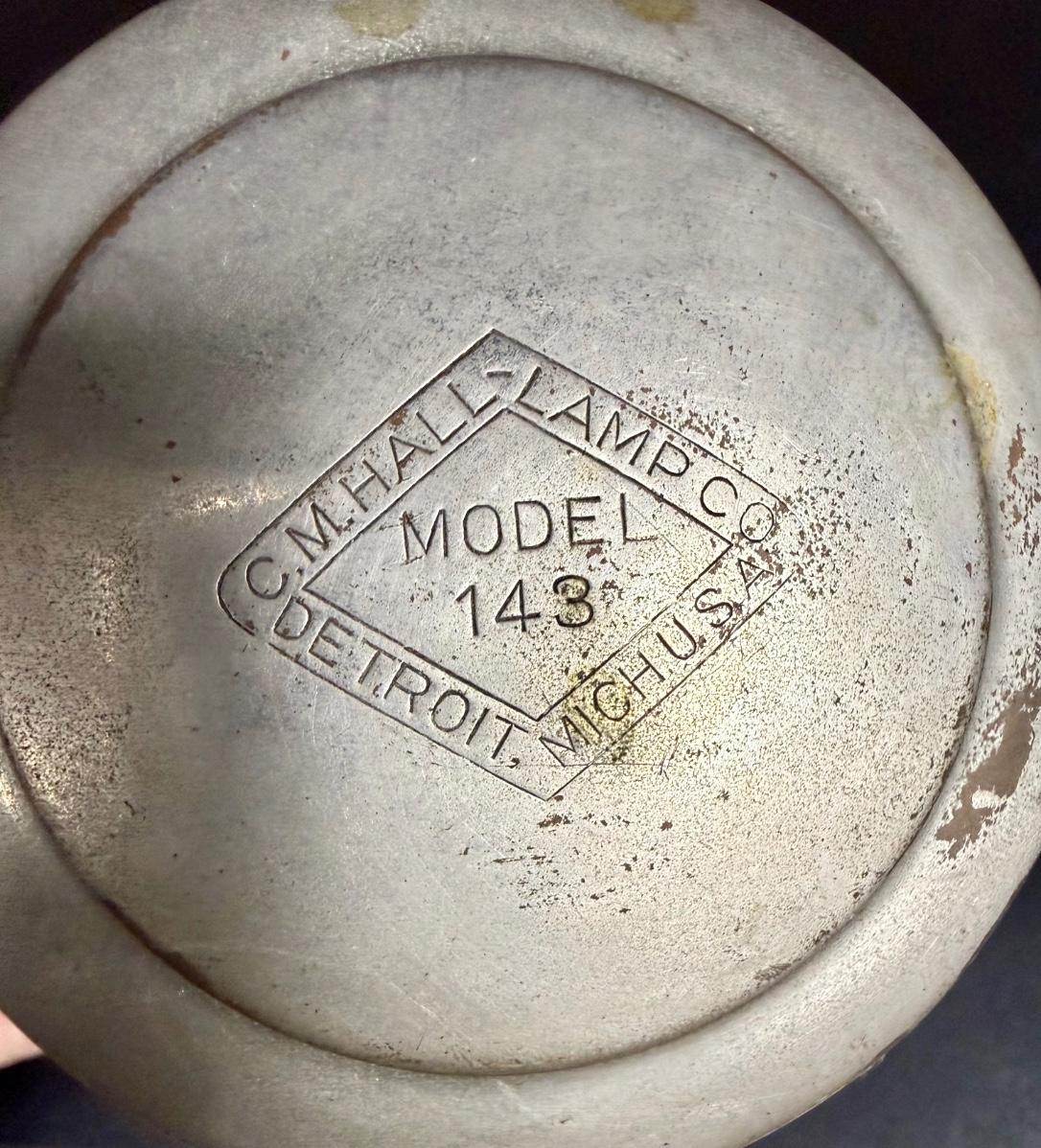 A nice old kerosene automobile or carriage buggy lamp. Model 143, manufactured by C.M. Hall Co, out of Detroit, Mich U.S.A., per etchings on top. This company dissolved in 1926 so this item is definitely from the early 1900s era.