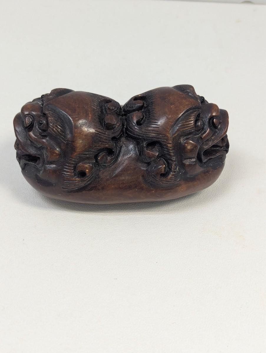 Vintage Carved Dragon Wood Carving Boxwood Decorative Sculpture