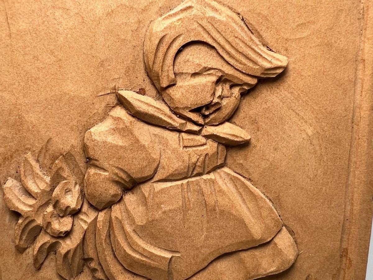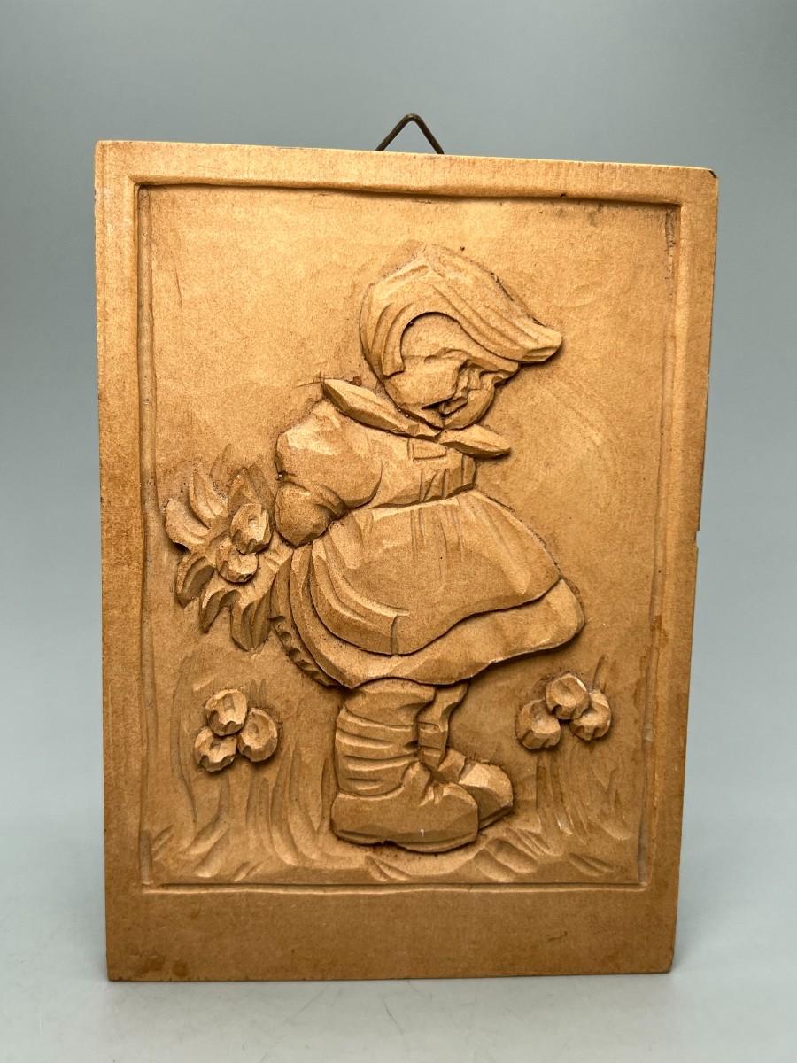 Vintage Carved Hummel Like Girl Wood Hanging Art
