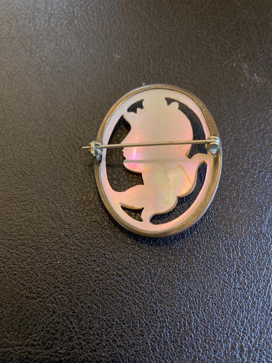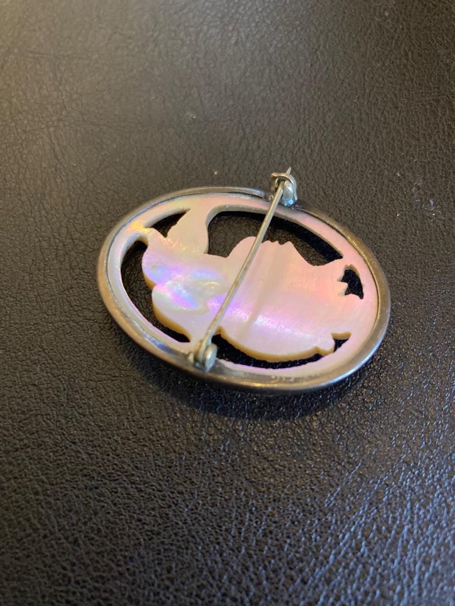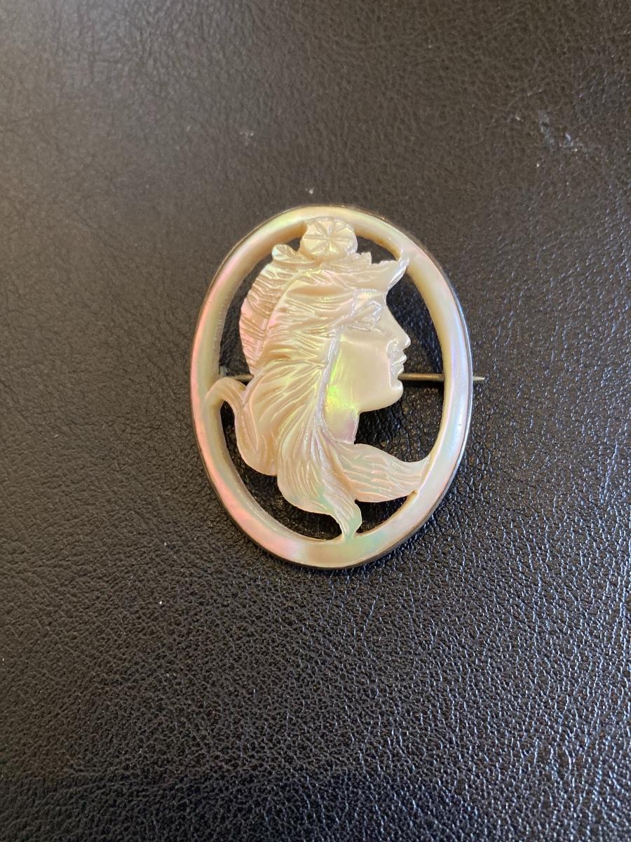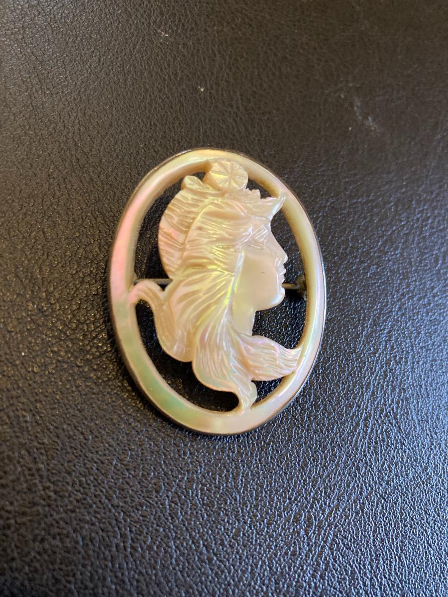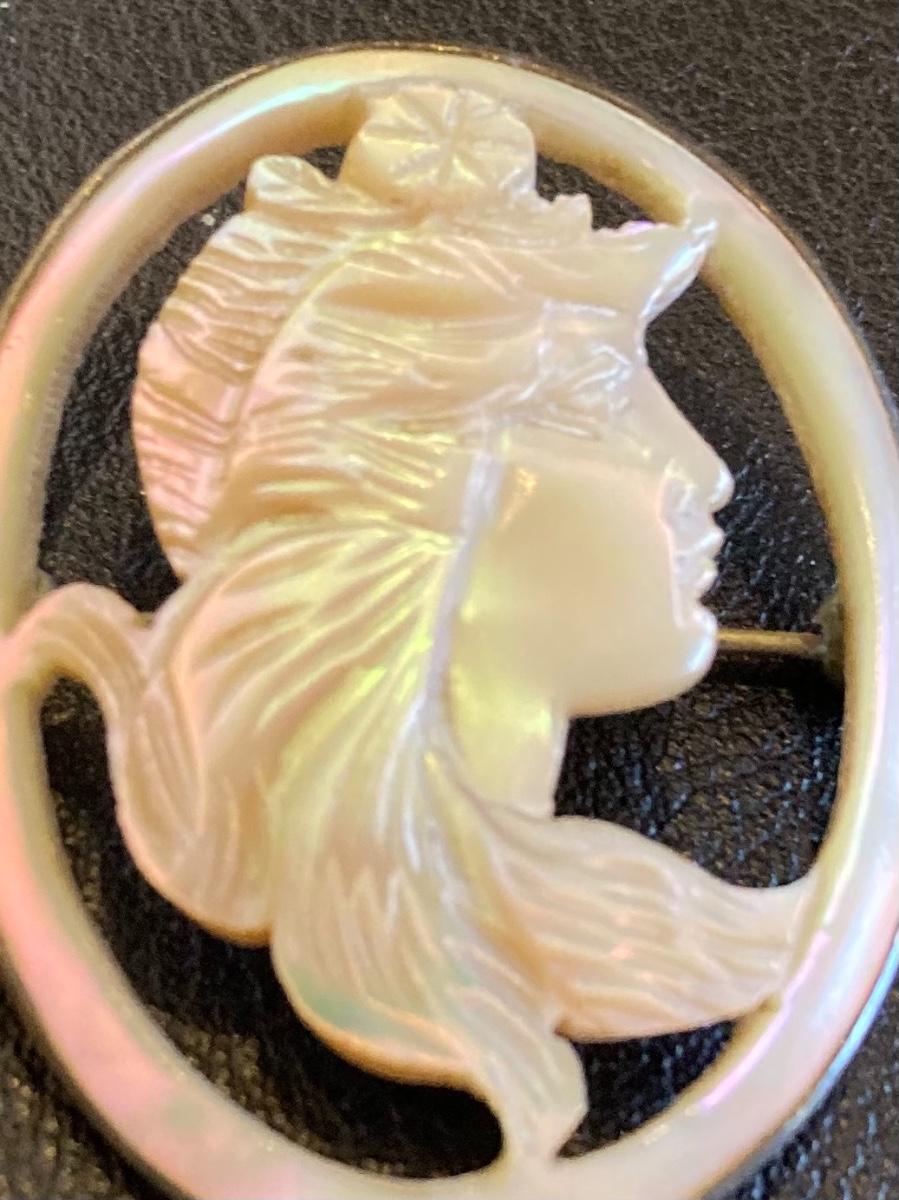 Vintage Carved Mother of Pearl Cameo Brooch Pin 1.5”