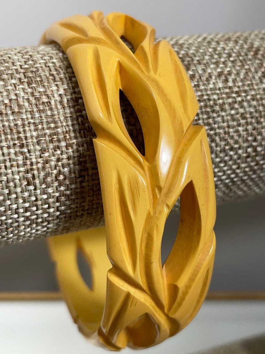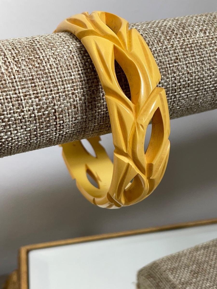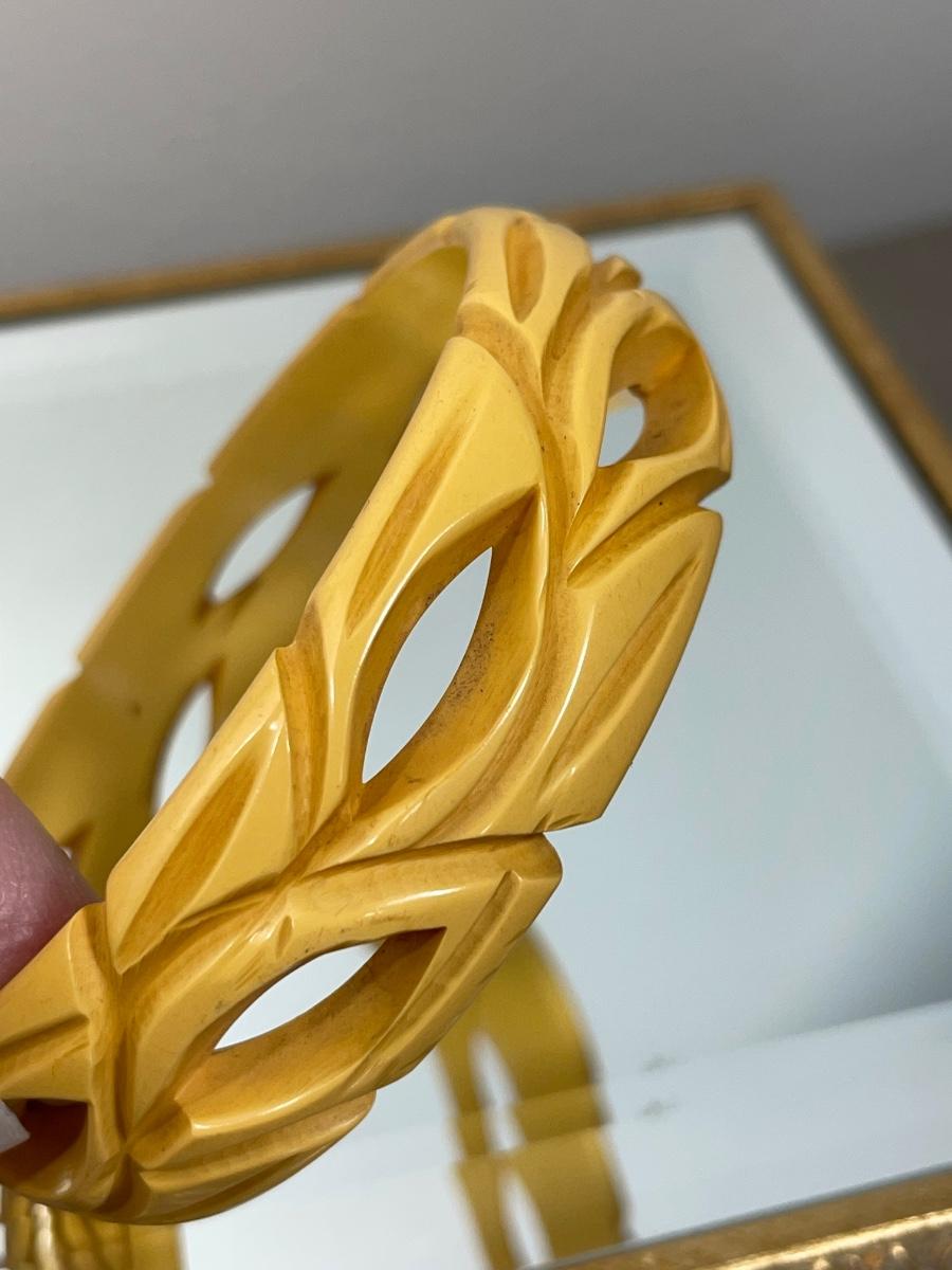 Vintage Carved Pierced Yellow Bakelite Bracelet